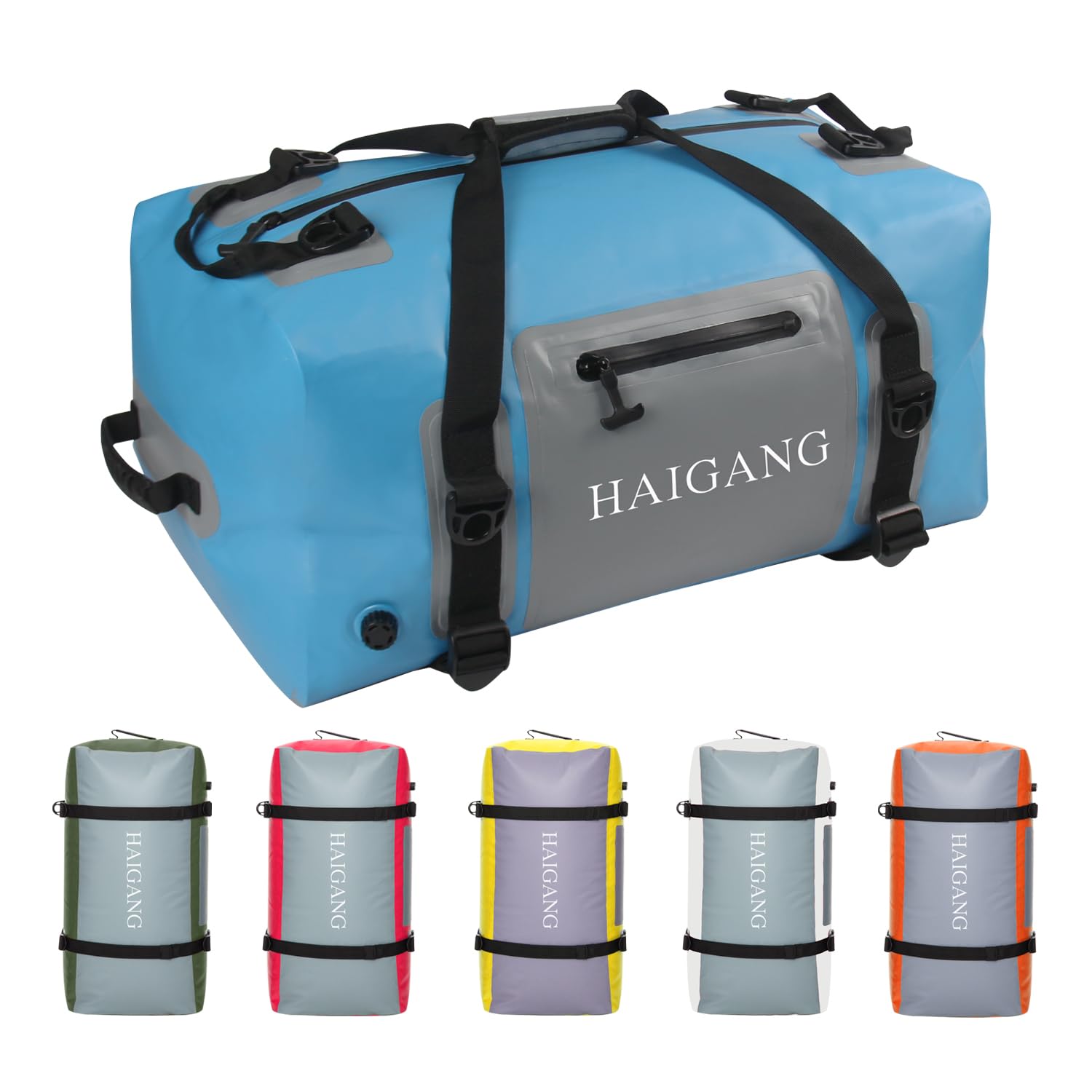 Bolsa de lona impermeable de 70 L/110 L, gran capacidad, correas y asas gruesas ajustables, cierre de cremallera, válvula de aire