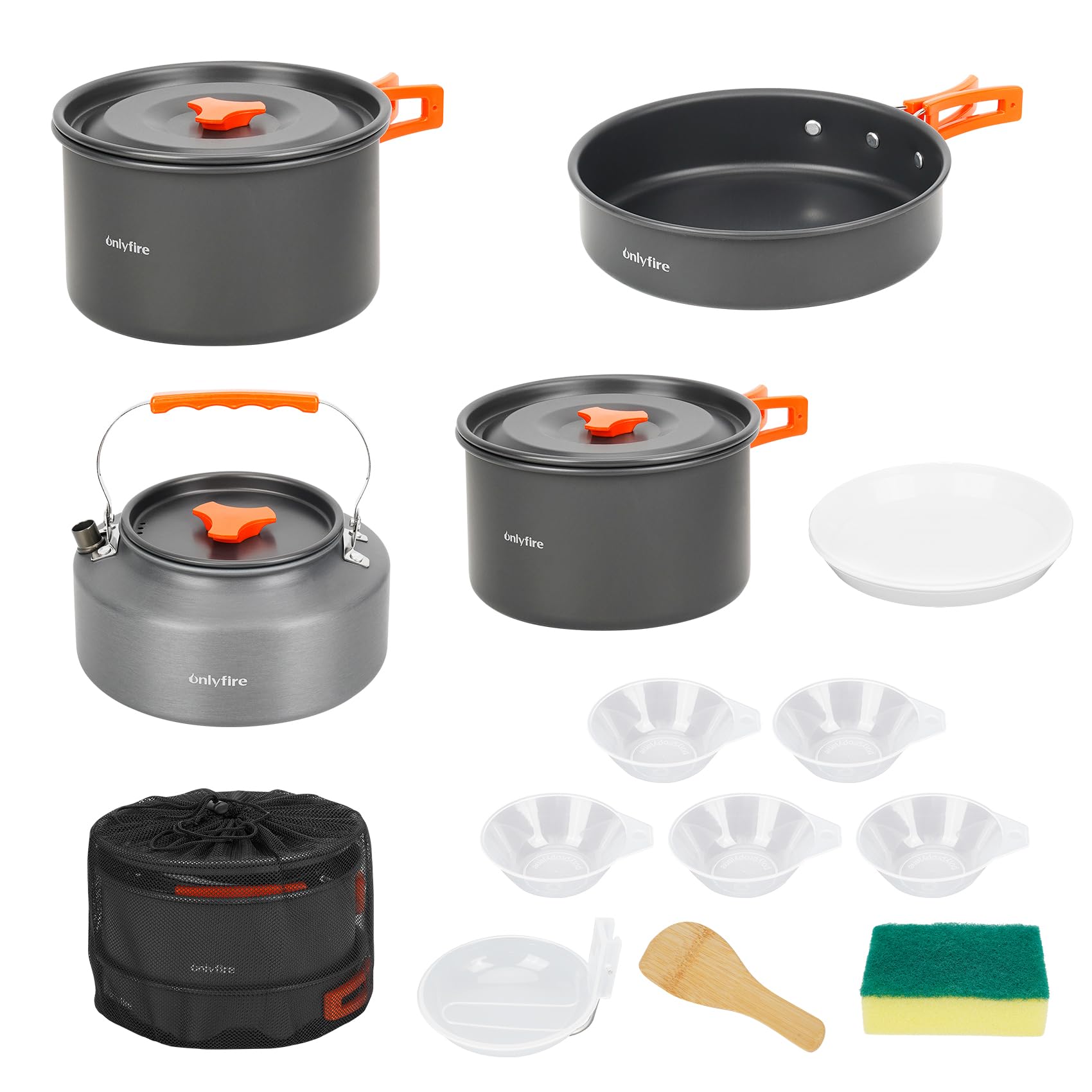 Onlyfire CT605 – Juego de utensilios de cocina para acampar, 15 piezas, antiadherente, ligero, con platos, tenedores, cuchillos, c