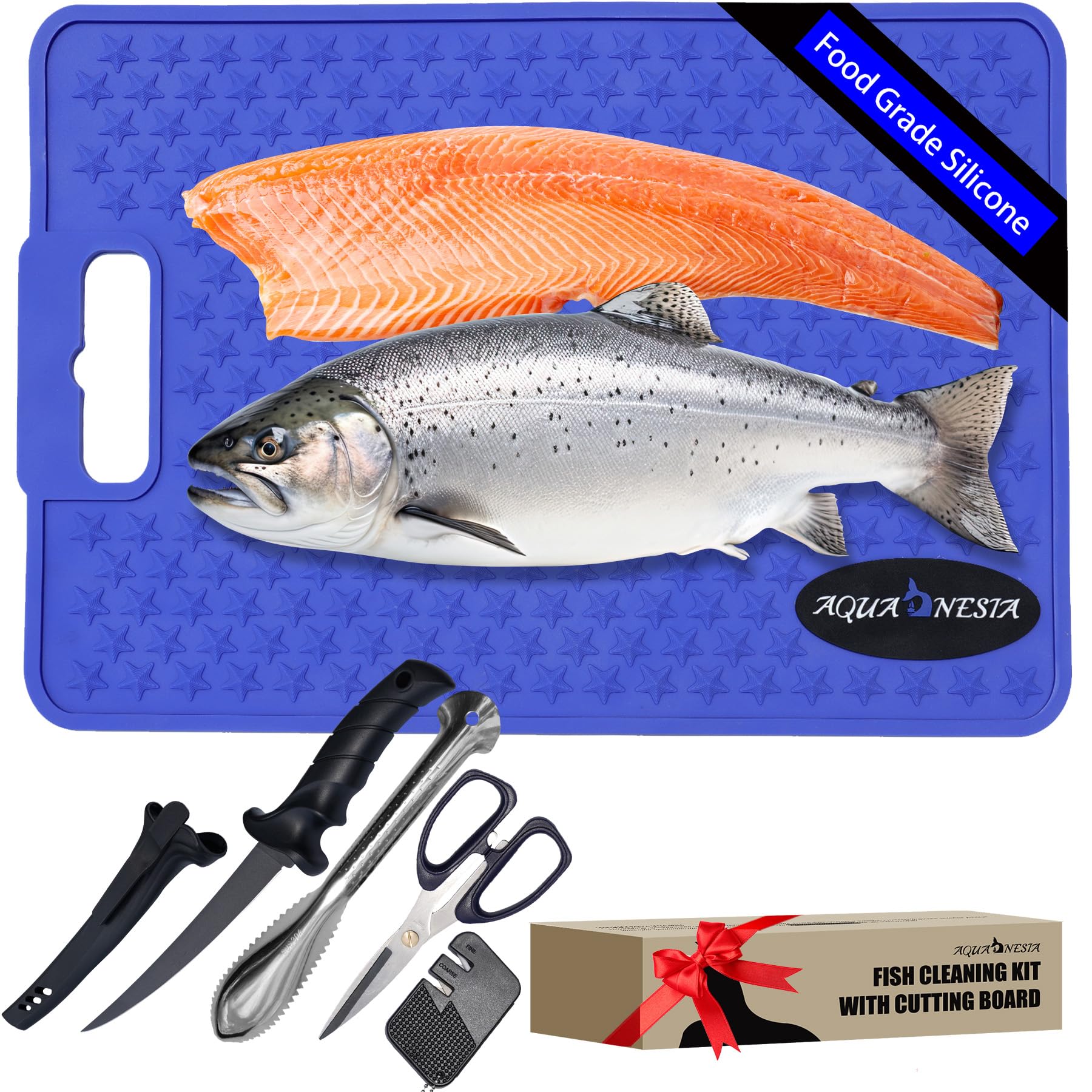 Juego de 5 alfombrillas de filete de pescado, alfombrilla de limpieza antideslizante con cuchillo de filete que se adhiere a los p