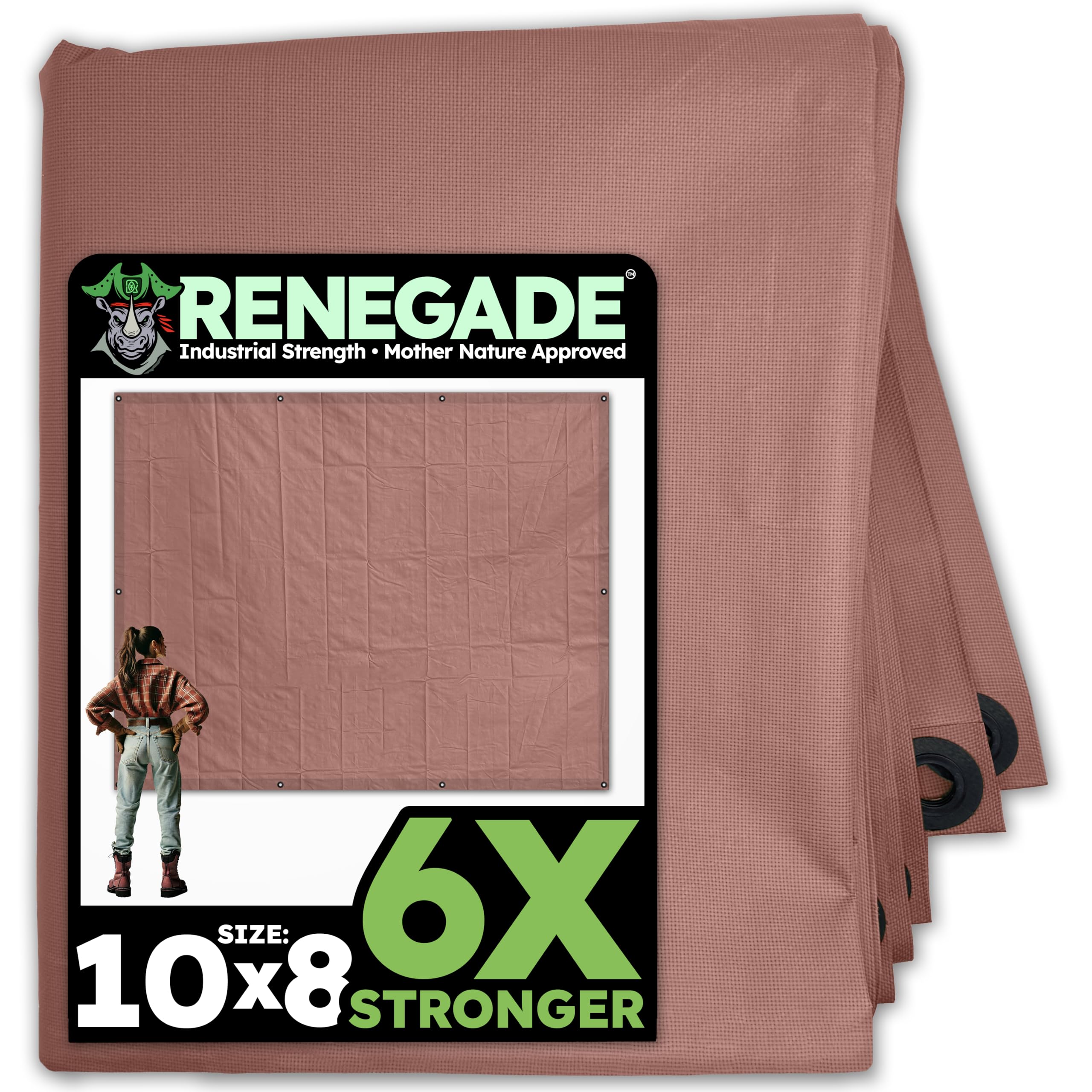 RENEGADE Lona industrial de 10 x 8 pies, color marrón, resistente, impermeable, resistente a los rayos UV, sin PFAS, lona multiuso