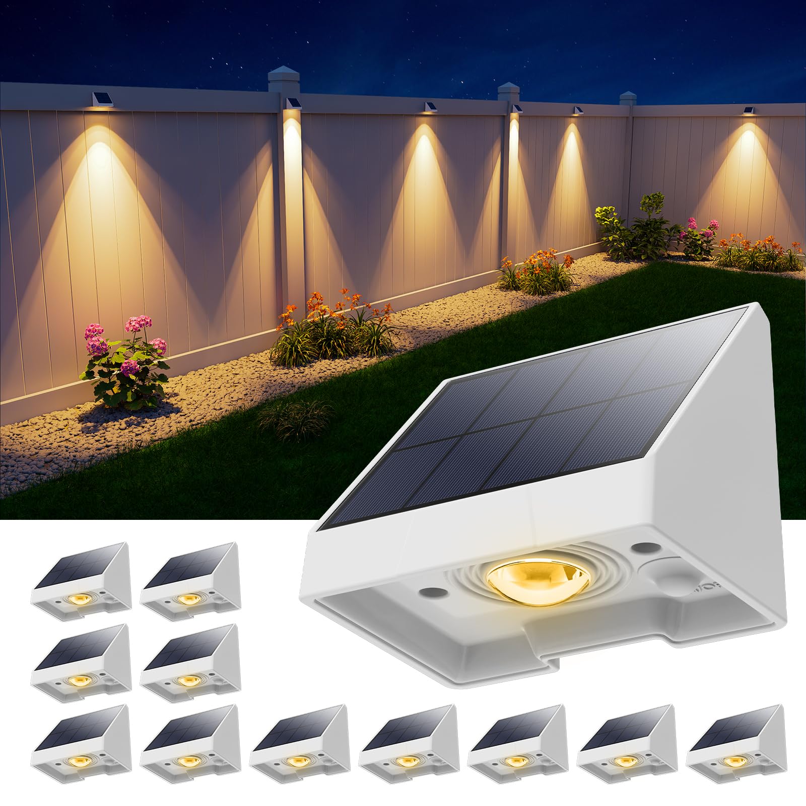 Paquete de 12 luces solares para valla al aire libre, impermeables, con lente LED blanca cálida, para jaula de piscina exterior, p