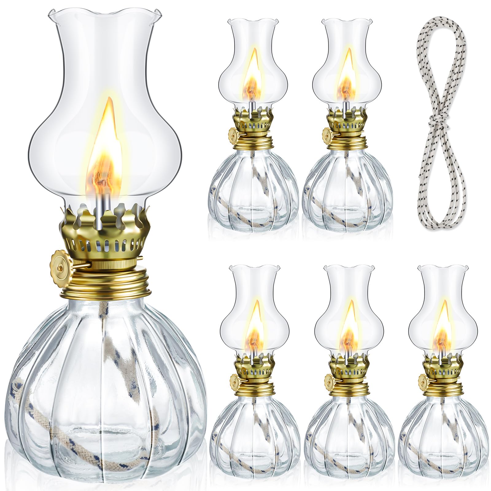 Yexiya Juego de 6 lámparas de cristal vintage de queroseno rústicas, lámpara de aceite, farol transparente, con mecha extra de 6.6
