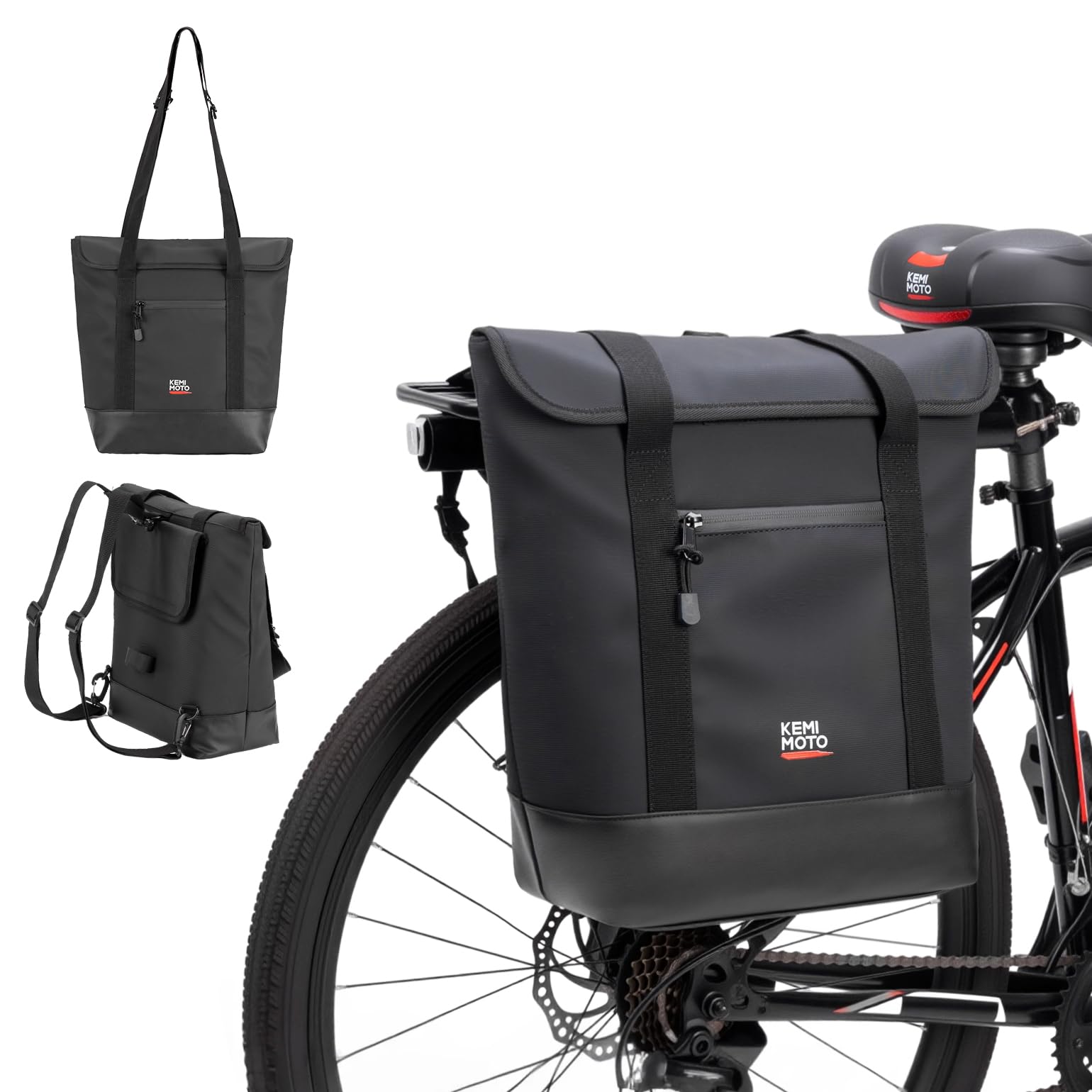 KEMIMOTO Bolsa para bicicletas, mochila para bicicletas con correa de hombro extraíble, resistente al agua 24L, soporte trasero pa