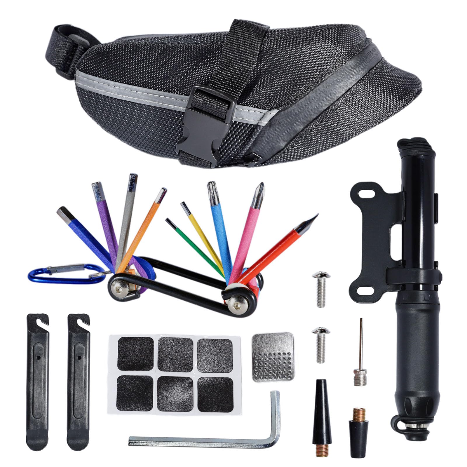 Kit de reparación de bicicletas con bomba de neumáticos de bicicleta, bolsa de herramientas de reparación de bicicletas portátil c