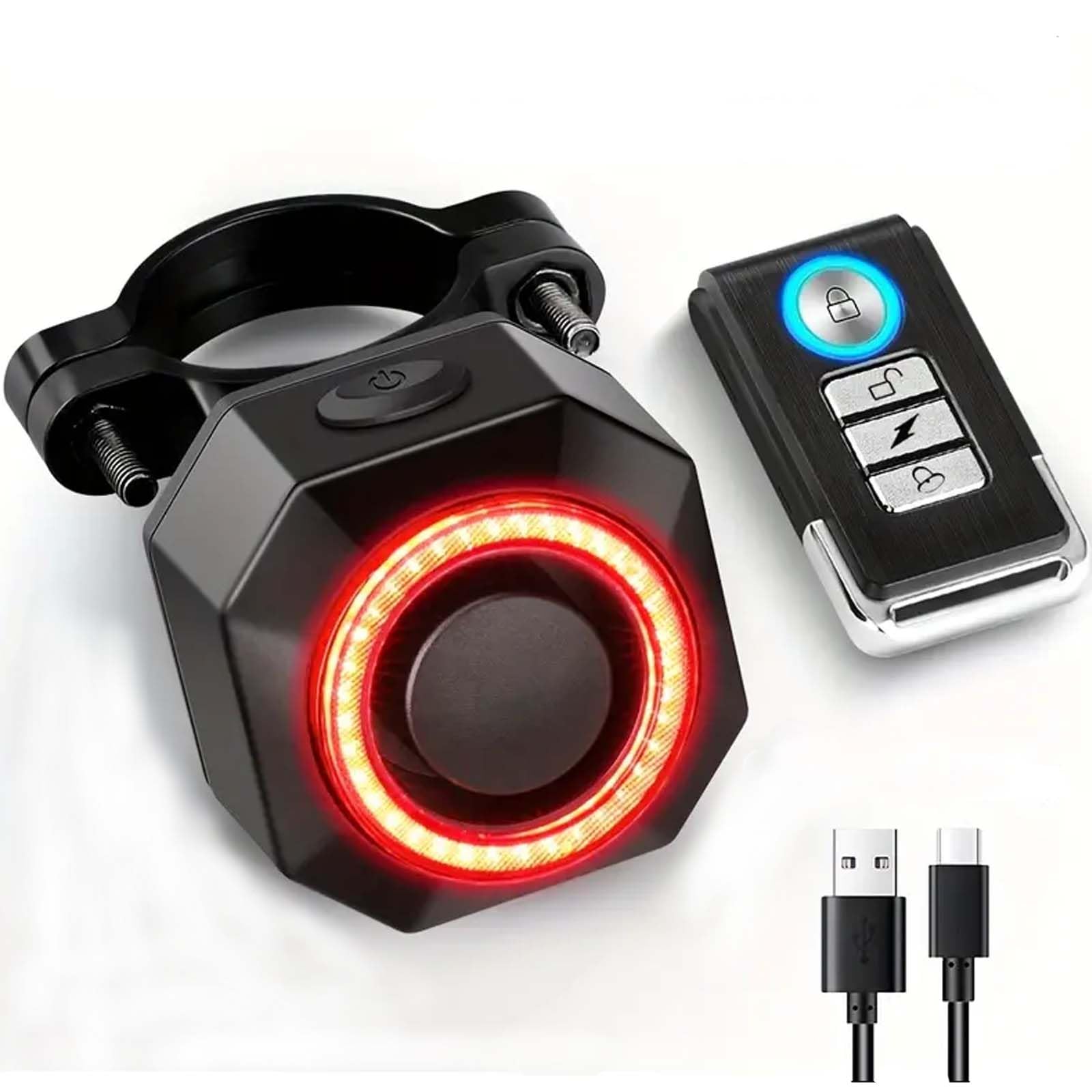 Luz trasera para bicicleta, bocina de alarma antirrobo, control remoto inalámbrico, carga USB, detección de freno automático intel