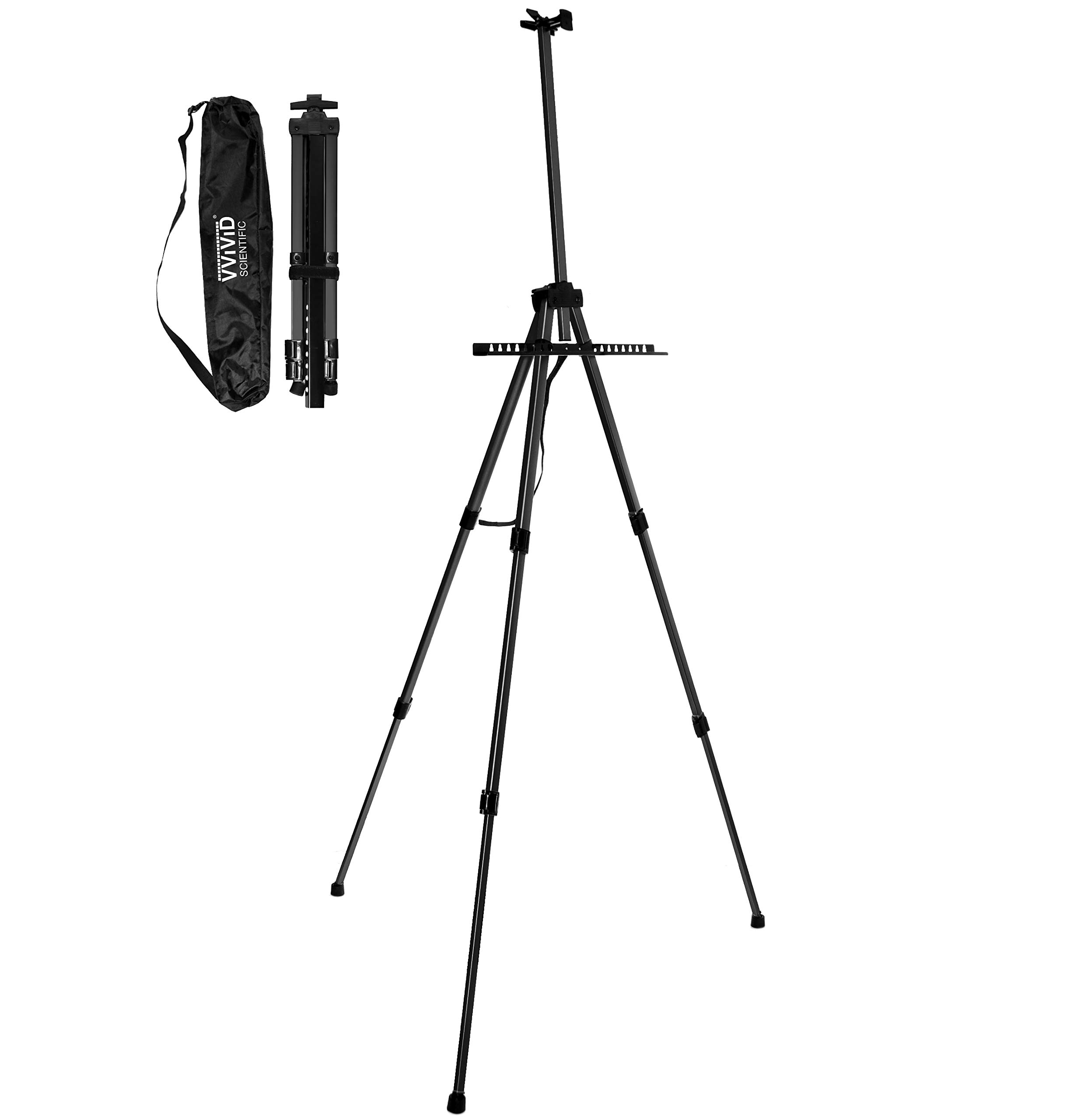 VViViD Caballete de exhibición de aluminio negro alto ajustable ligero incluyendo estuche de transporte de nailon negro (64 pulgad