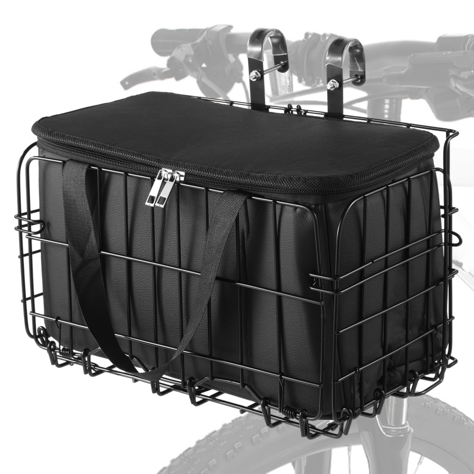 Wiel Cesta de bicicleta con forro negro resistente a la lluvia, cesta plegable de acero para bicicleta, fácil de instalar en el ma