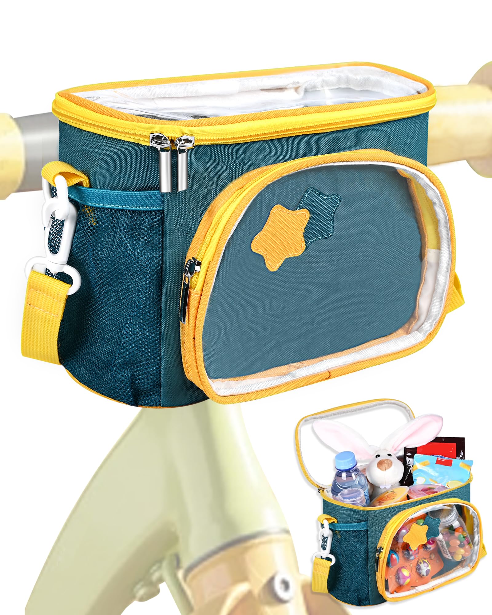 Kids Bike Basket, Front Handlebar Bag for Kids Girls Bikes, Waterproof Small Bike Basket with Zipper for Toddler Scooter Tricycle