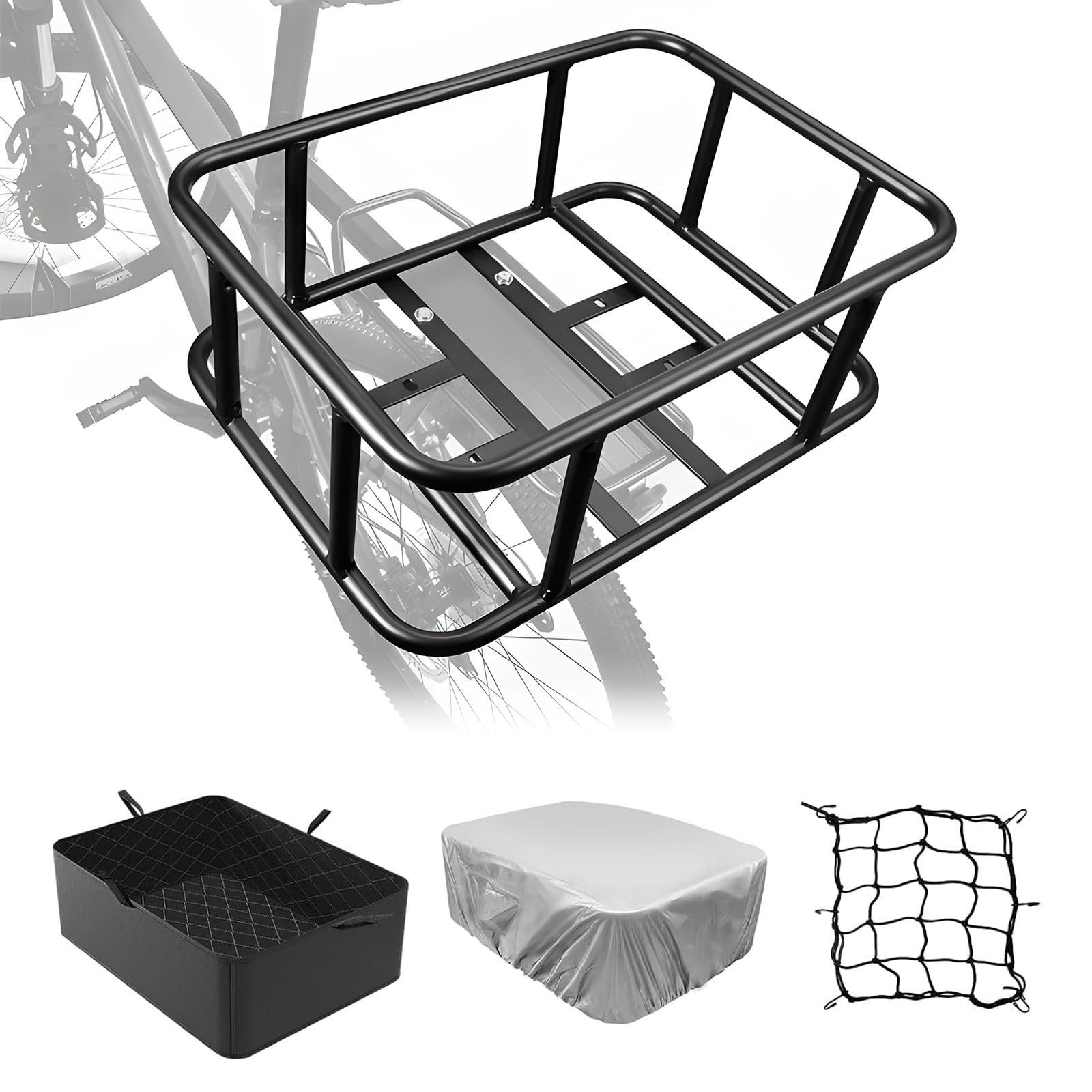 Cesta trasera para bicicleta con red de carga y bolsa extraíble para bicicleta, resistente al agua, para la mayoría de las bicicle