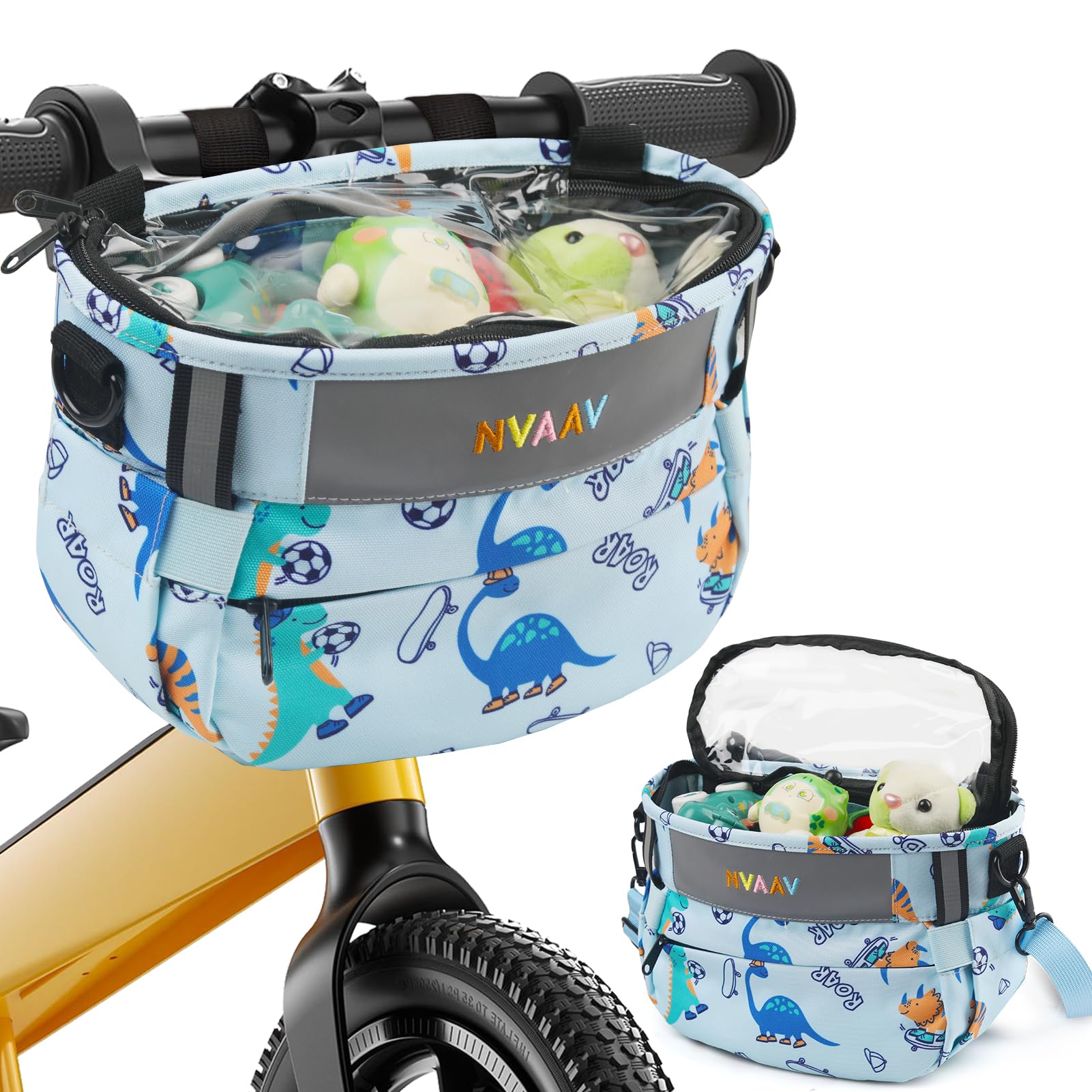 Kids Bike Basket – Transparent Bicycle, Scooter Handlebar Front Bag – Convert to Crossbody Bag (Black Velcro Strap)