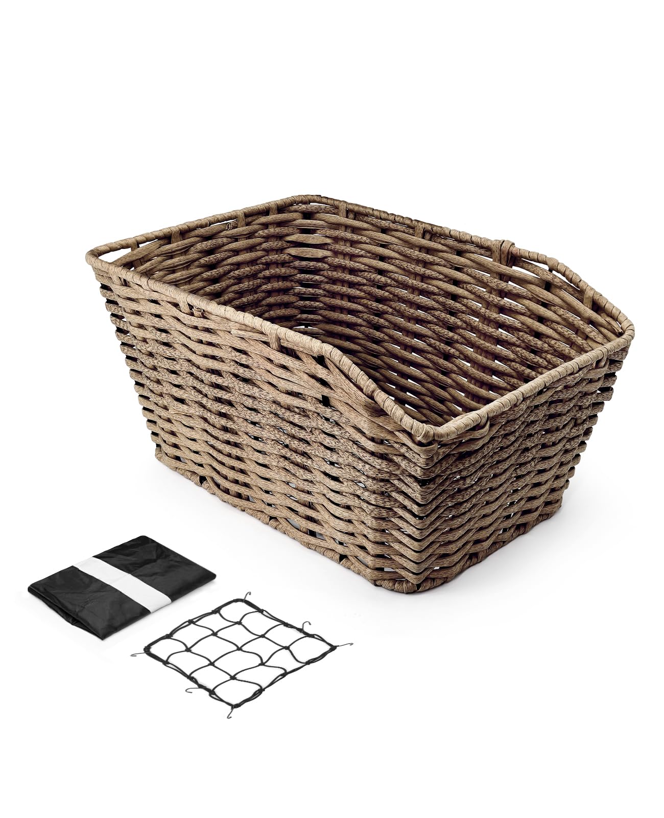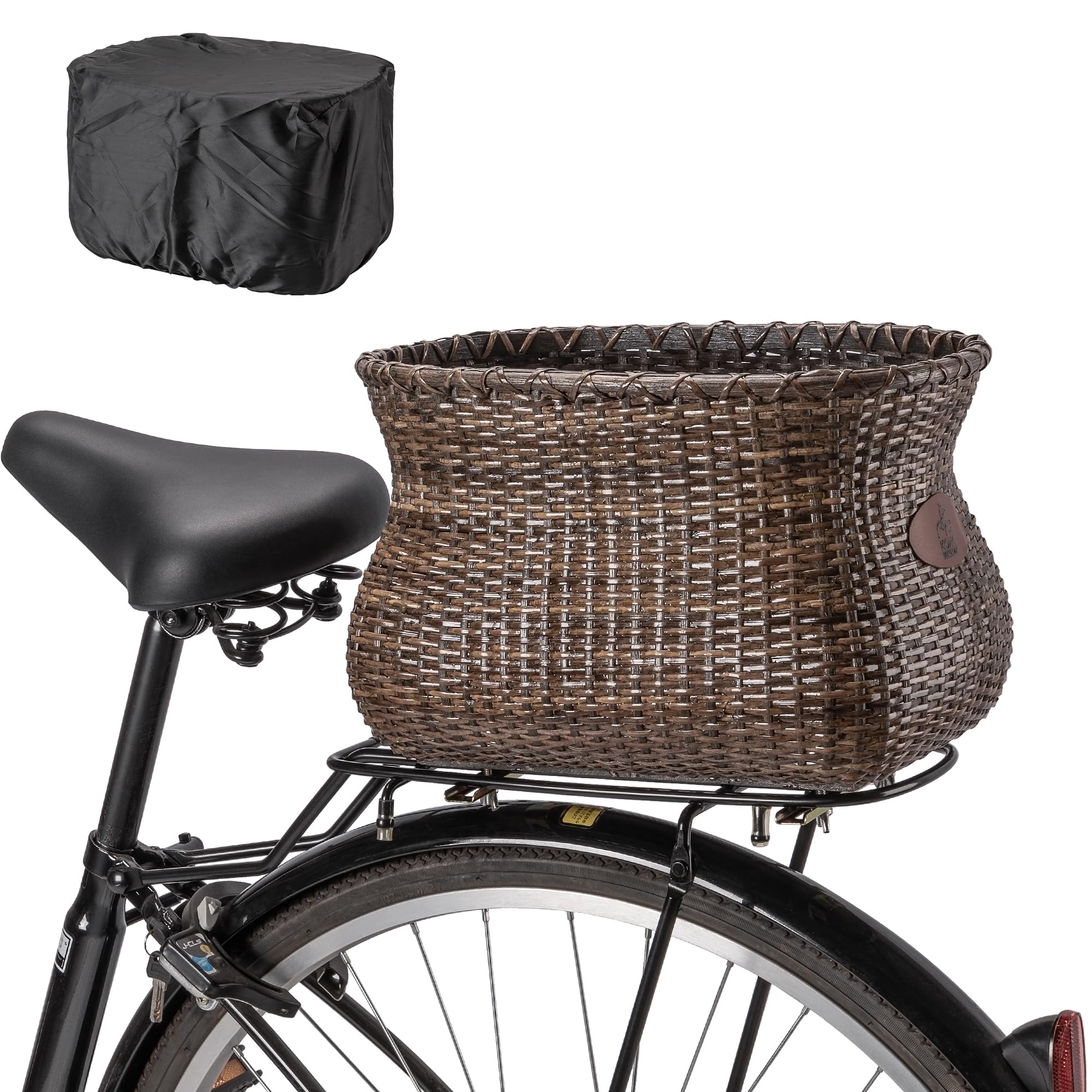 ANZOME Cesta de bicicleta trasera, de gran capacidad, retro, marrón, hecha a mano, rectangular, de ratán, con cubierta impermeable