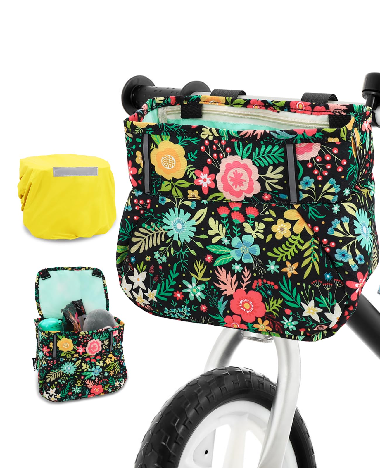ANZOME Cesta de bicicleta para niños, cesta grande para bicicleta de flores coloridas, bolsa para manillar de bicicleta, cesta de