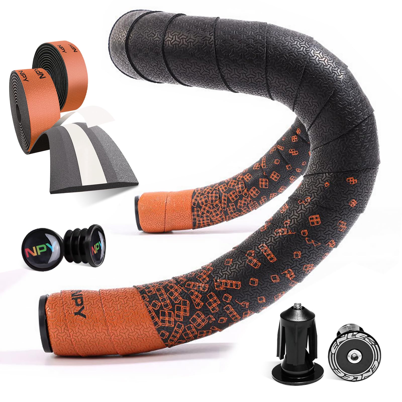2 cintas de barra de bicicleta, cinta para manillar de bicicleta, cinta de agarre de bicicleta de carretera, con 4 tapones de extr