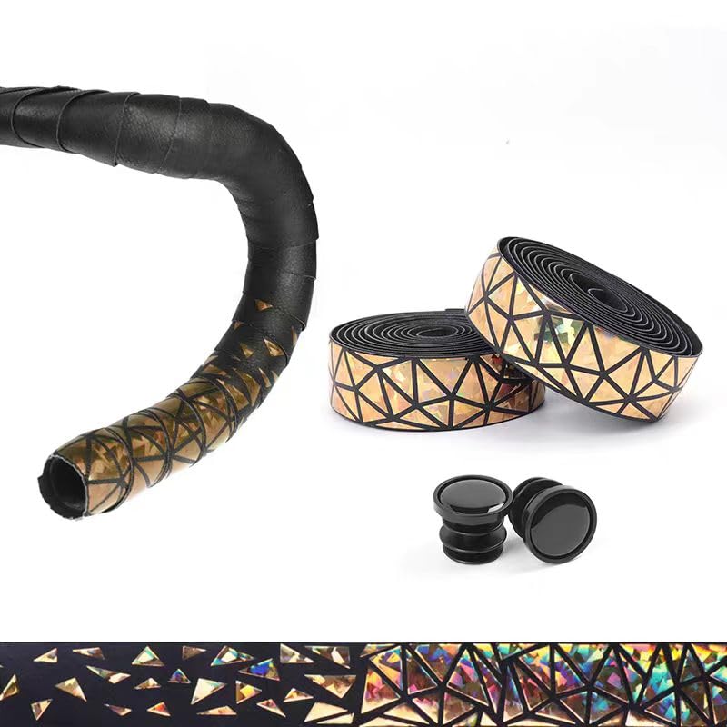 Supacaz Cinta de barra – Super Sticky Kush – Star Fade – Gold + Gold Star Plugz – Cinta de manillar de ciclismo