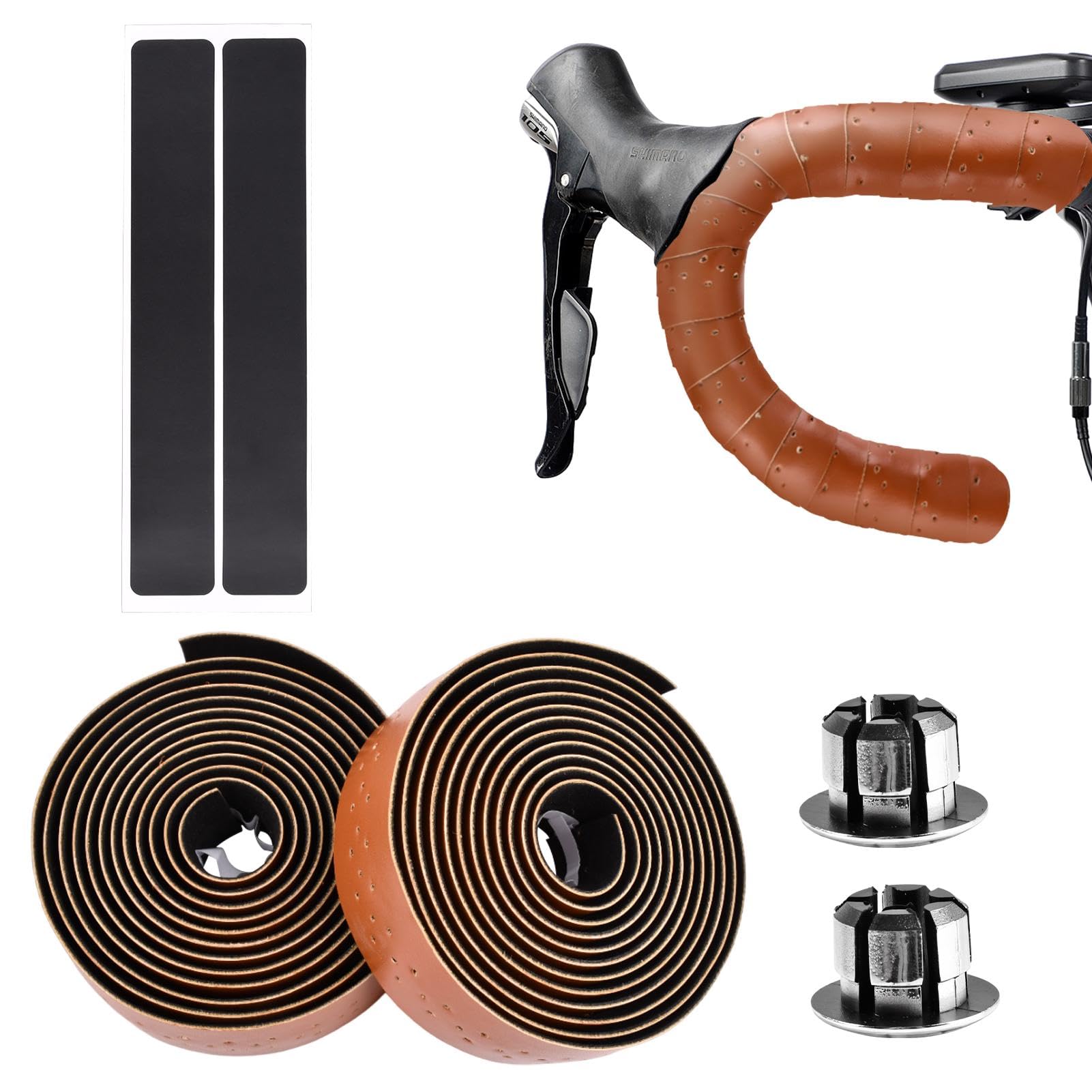 2 rollos de cintas para manillar de bicicleta con 2 tapones de extremo de mango y 2 cintas de acabado, cintas autoadhesivas multif