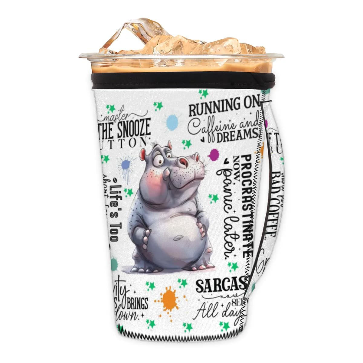 Funda reutilizable para café helado, hipopótamo, linda con asa, de neopreno, aislador de hielo, fundas para tazas de café, soporte