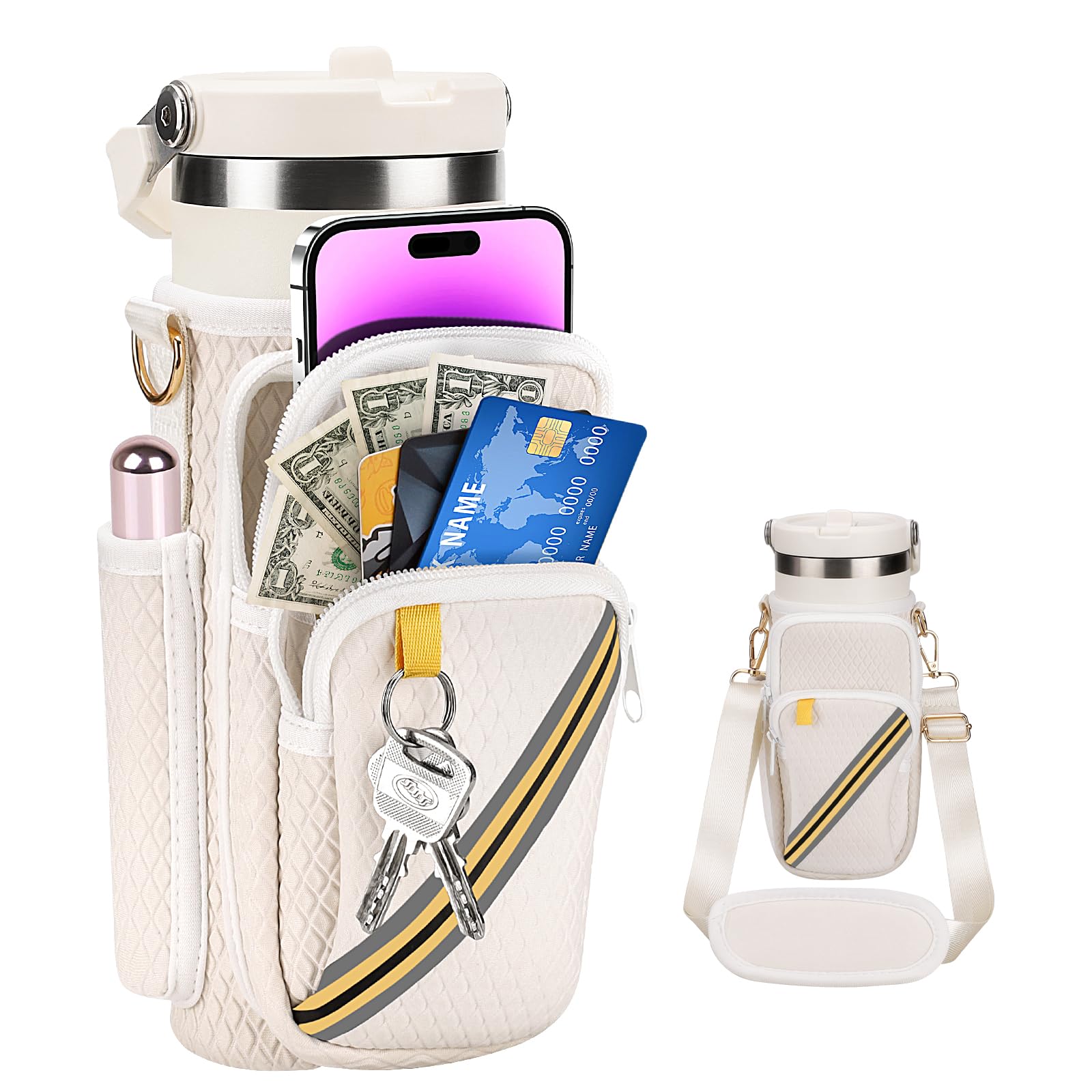 EGH Soporte para botella de agua con correa, funda de neopreno para botellas de 30/32 onzas, sostiene teléfono y llaves, transport