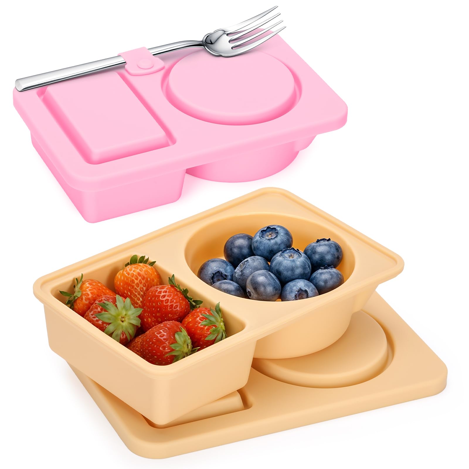 2 recipientes de silicona con tapas, recipientes reutilizables para aperitivos con doble compartimento para mermeladas de frutas y
