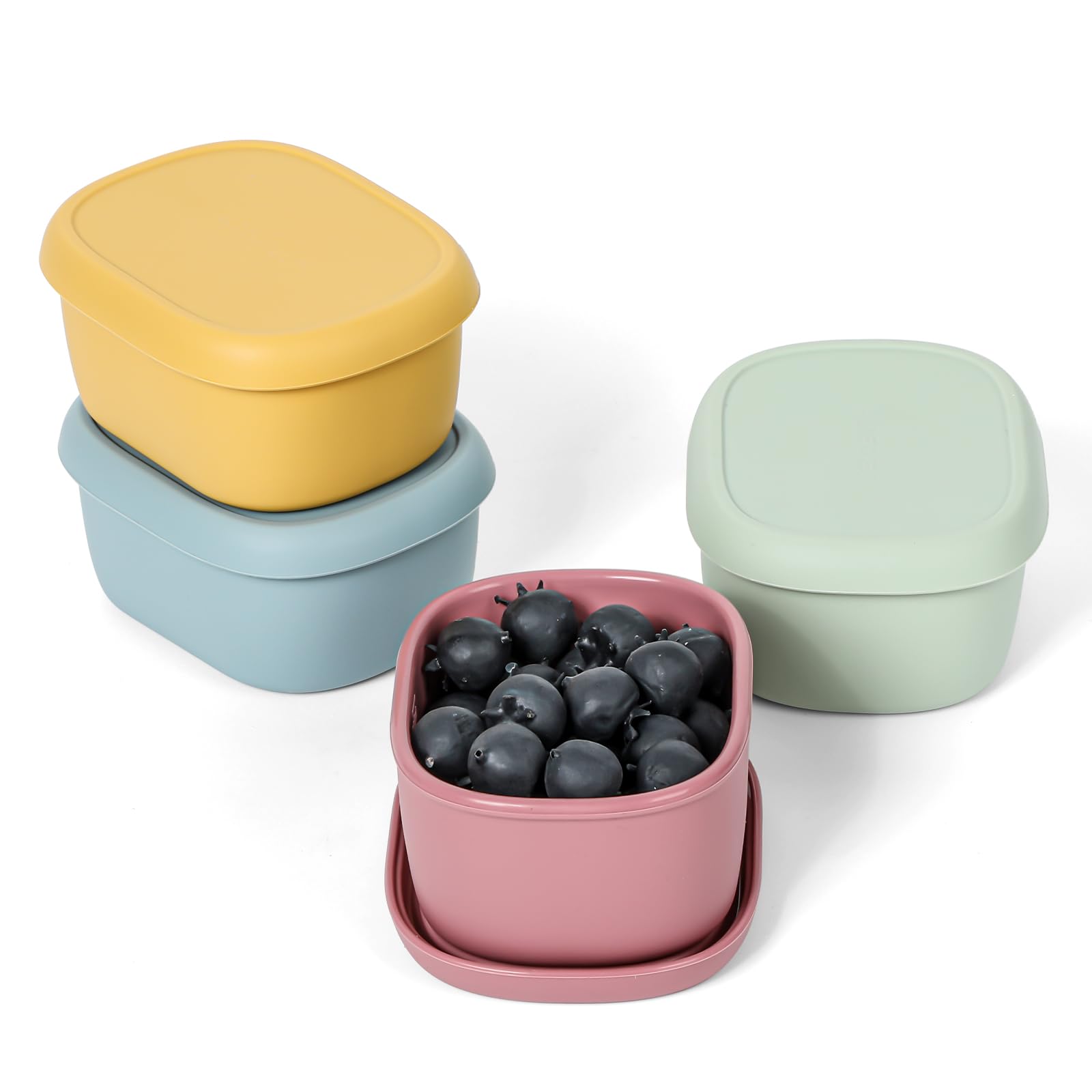 4 recipientes de silicona de 7 onzas para niños, pequeños recipientes de alimentos con tapas, contenedor de frutas para el almuerz
