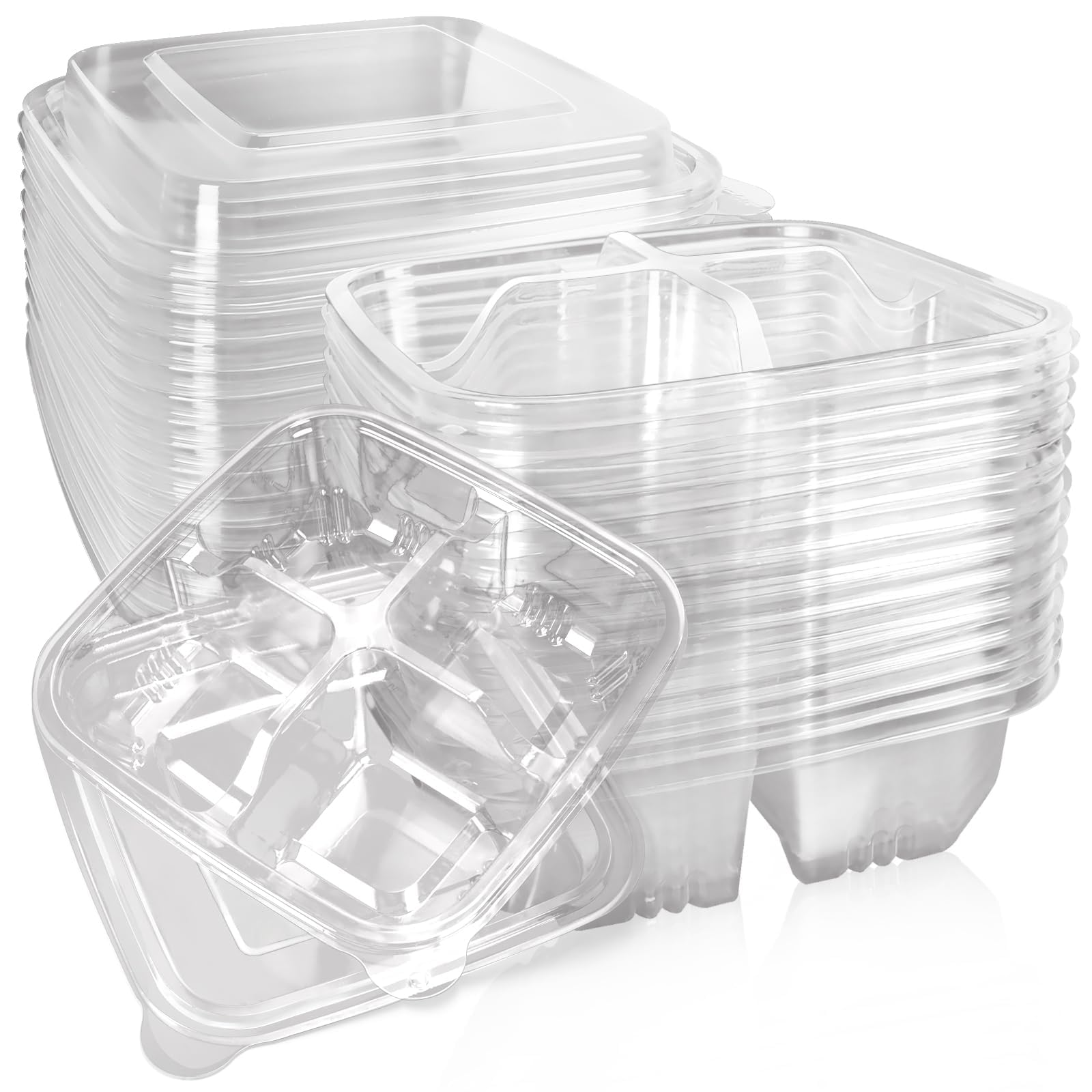 Paquete de 20 recipientes transparentes de comida Bento para aperitivos, 4 compartimentos para preparación de comidas con tapas pa