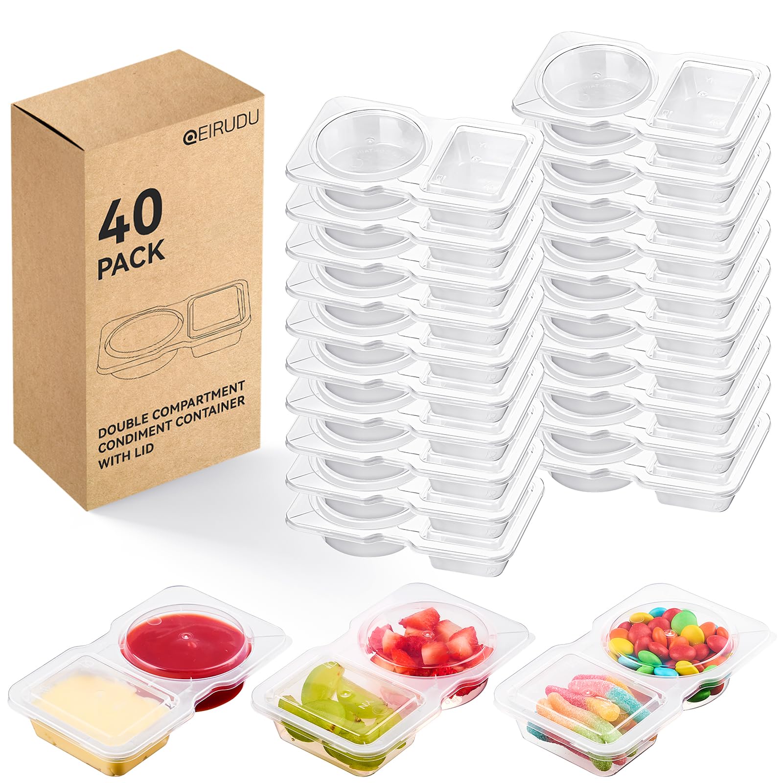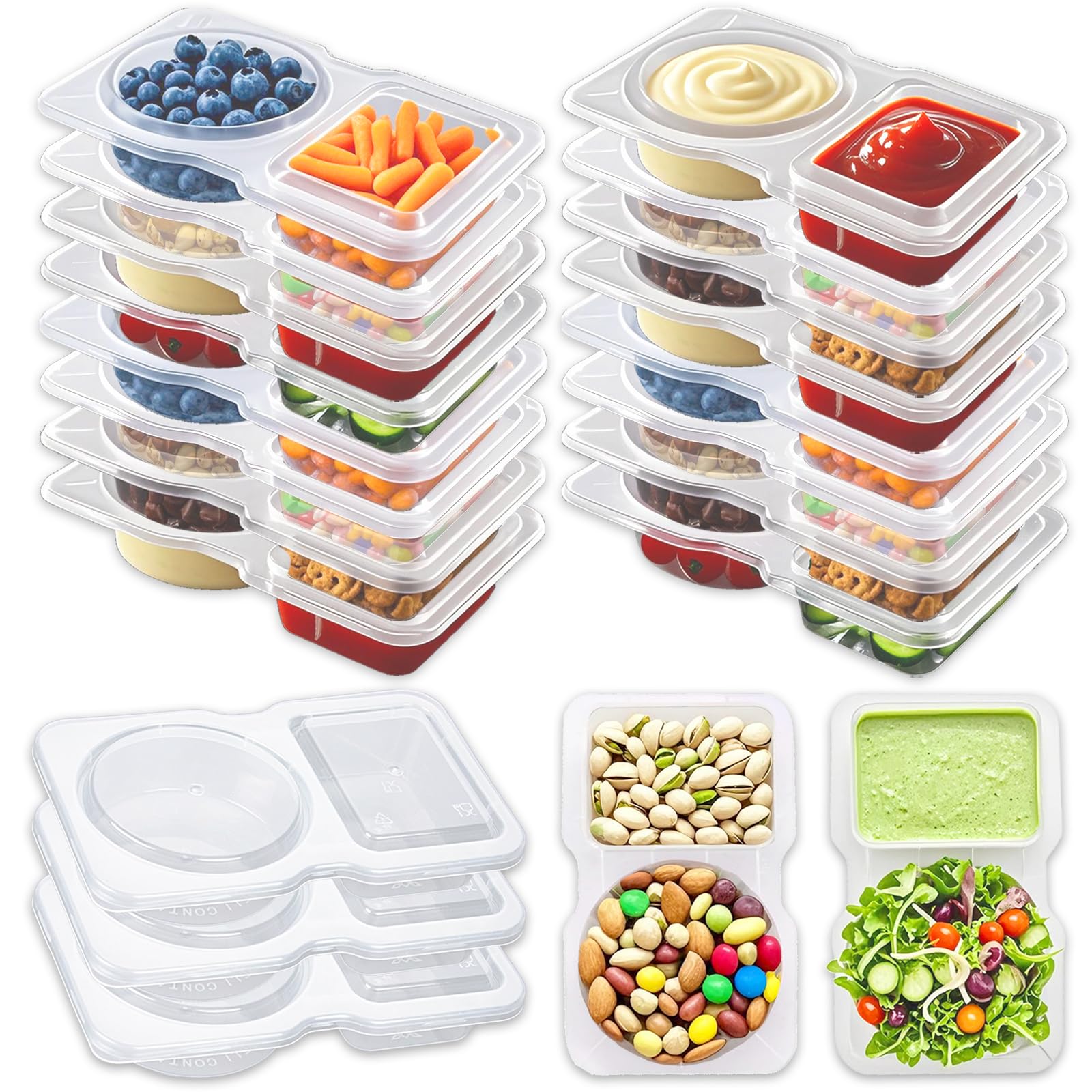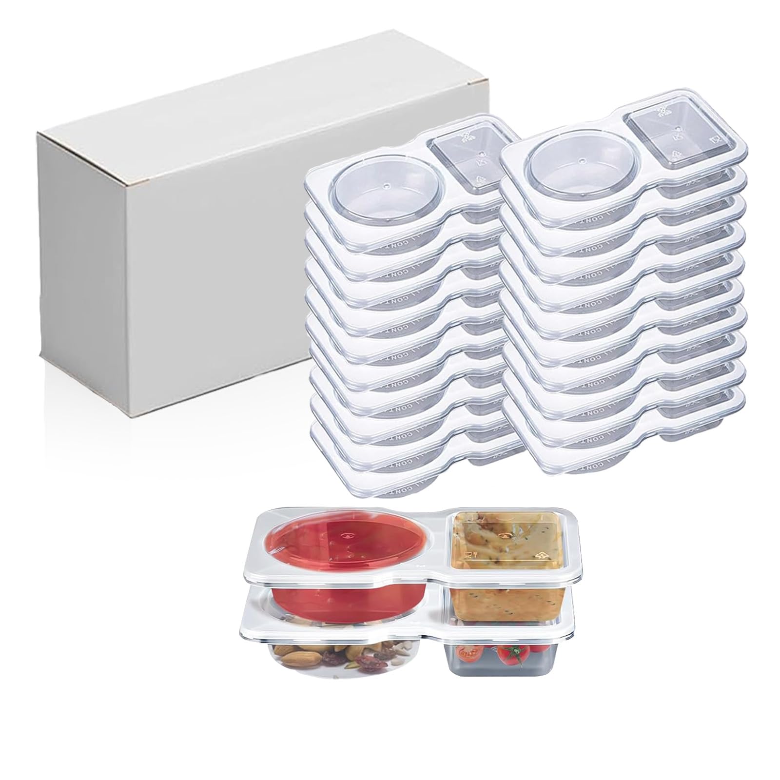 20 recipientes de condimentos de doble compartimento, contenedores desechables con tapas, compartimentos transparentes para aperit