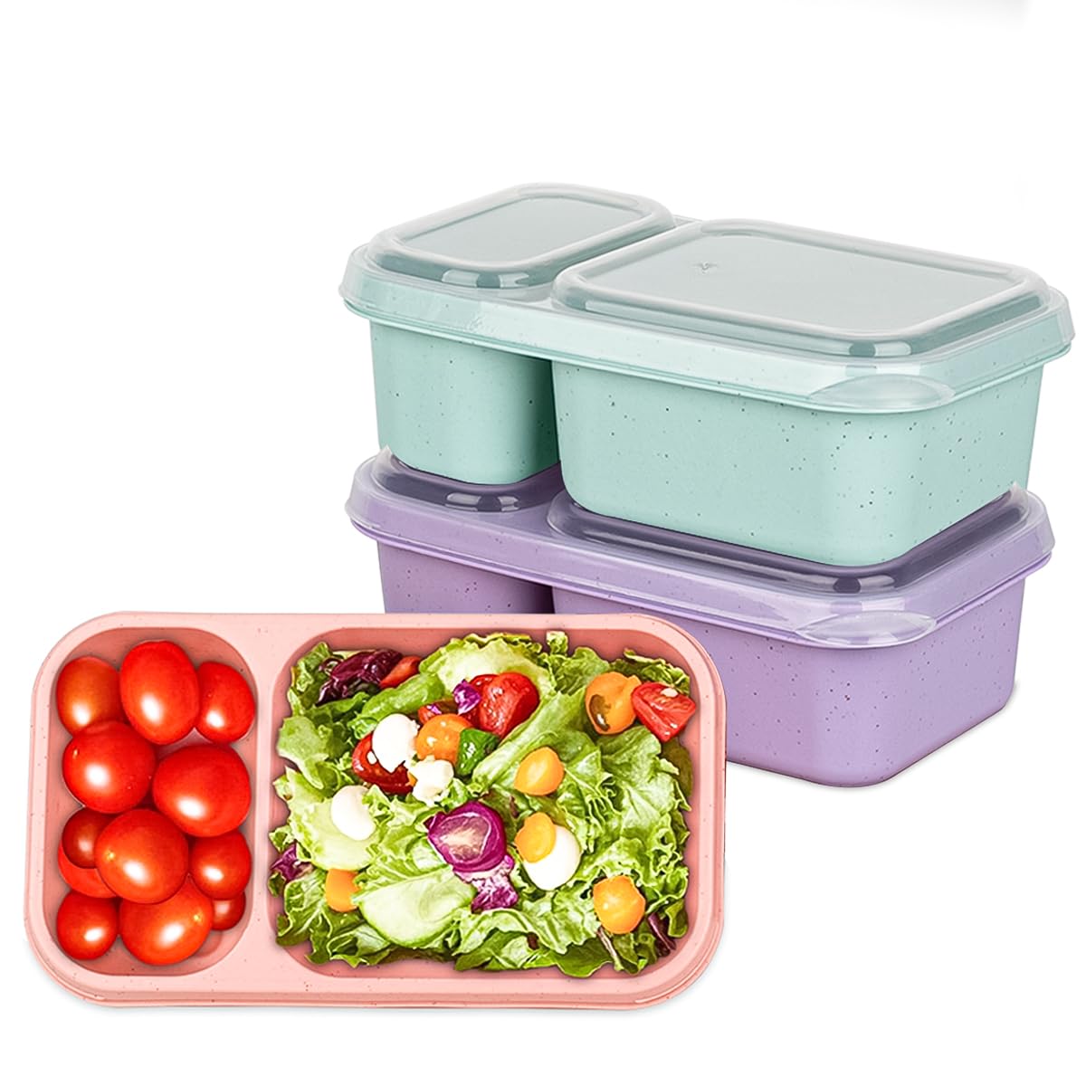 Paquete de 4 recipientes Bento para aperitivos, 4 compartimentos para almacenamiento de alimentos, lonchera de paja de trigo, cont