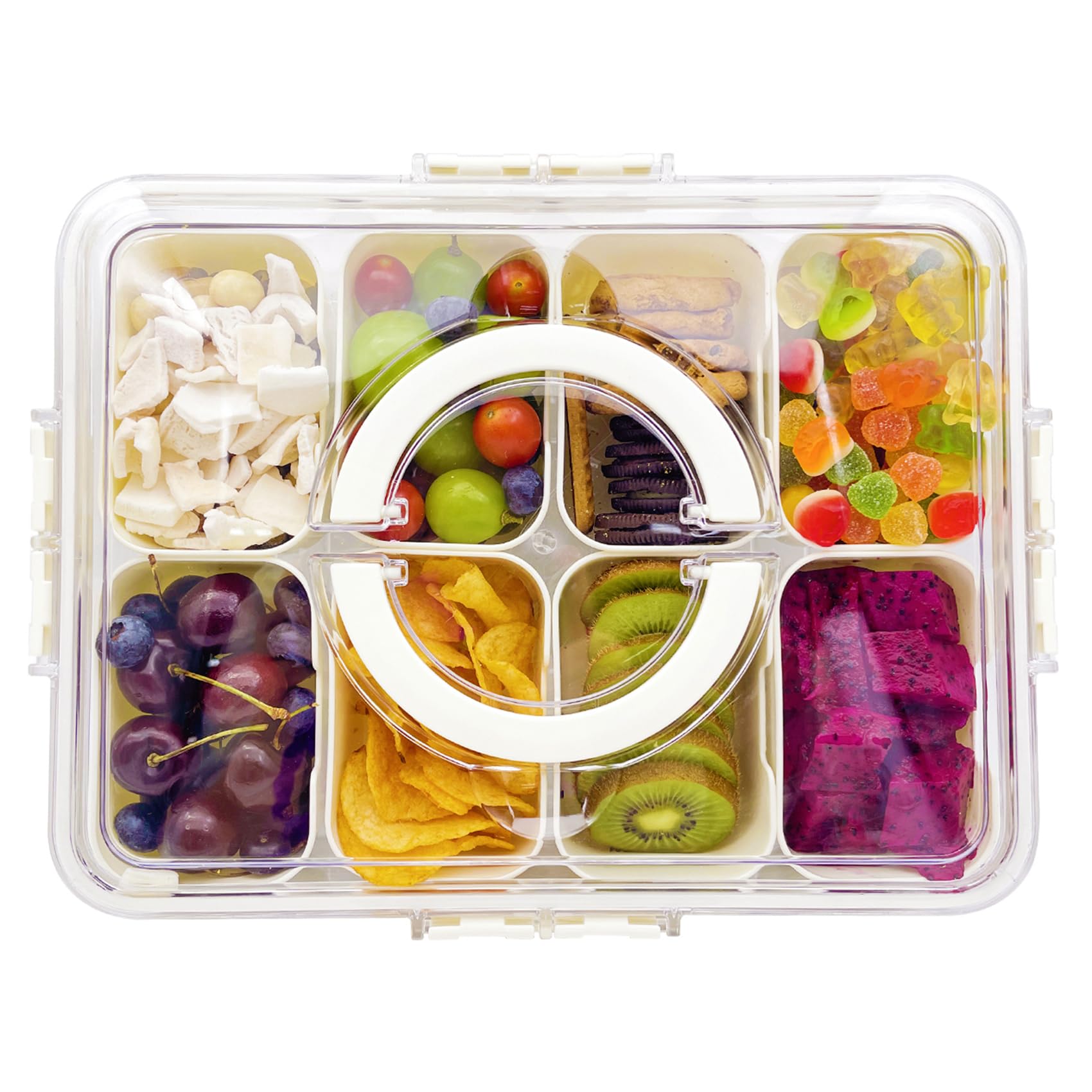 Contenedor de caja de aperitivos, contenedores de almacenamiento de dulces portátiles transparentes, bandeja dividida de 8 compart