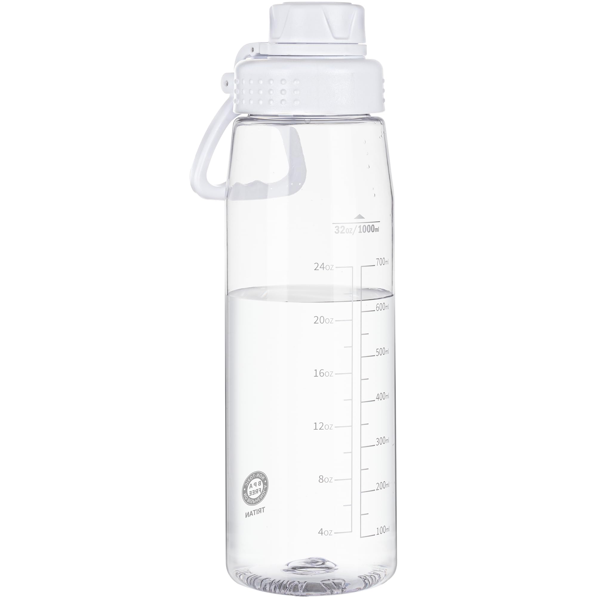 Botella de agua transparente de 32 onzas, con tapa de pico y asa de transporte, reutilizable, sin BPA, botella de agua de senderis