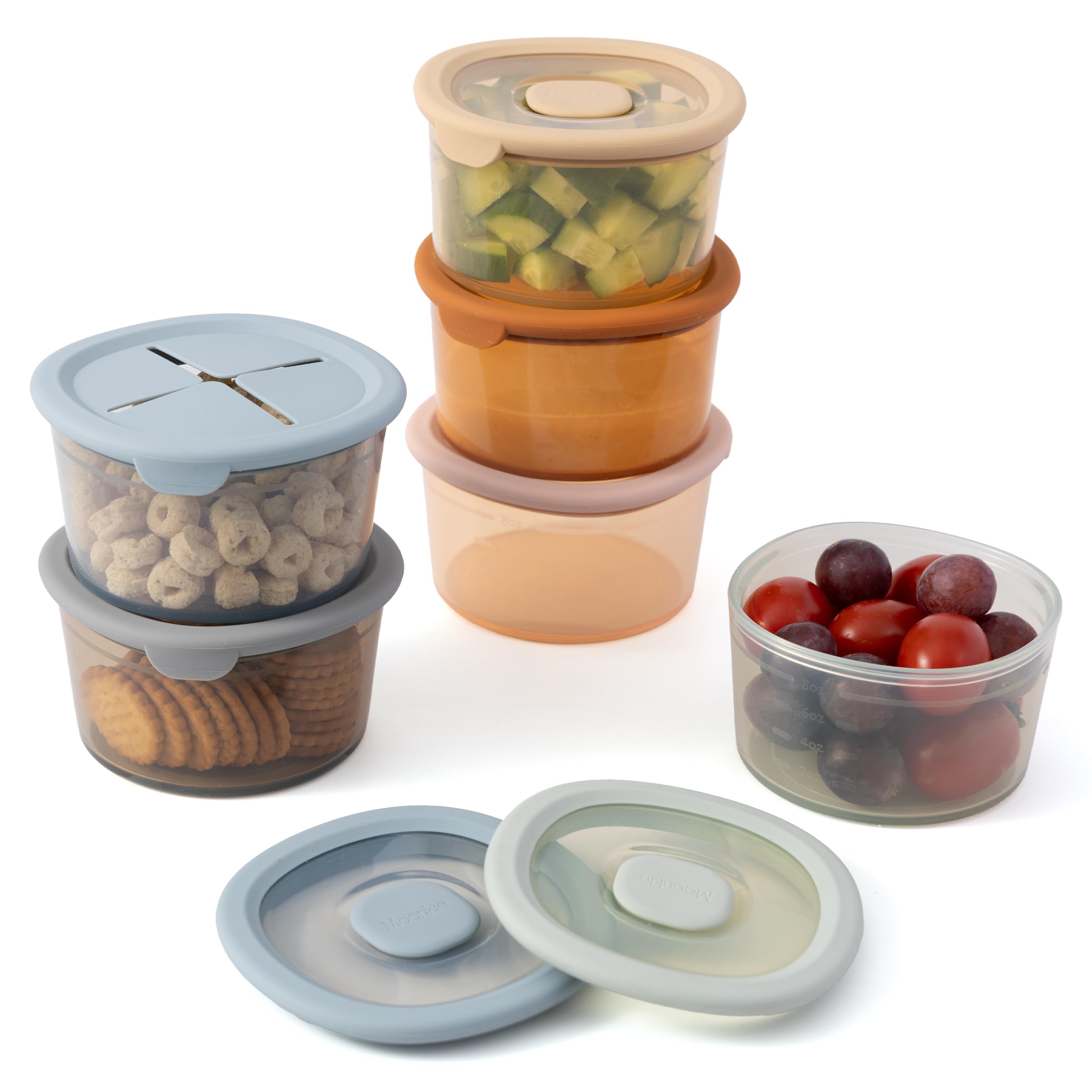 Moonkie Recipientes de silicona para niños y niños pequeños | Recipientes de comida para bebés de 8 onzas con tapas herméticas y u