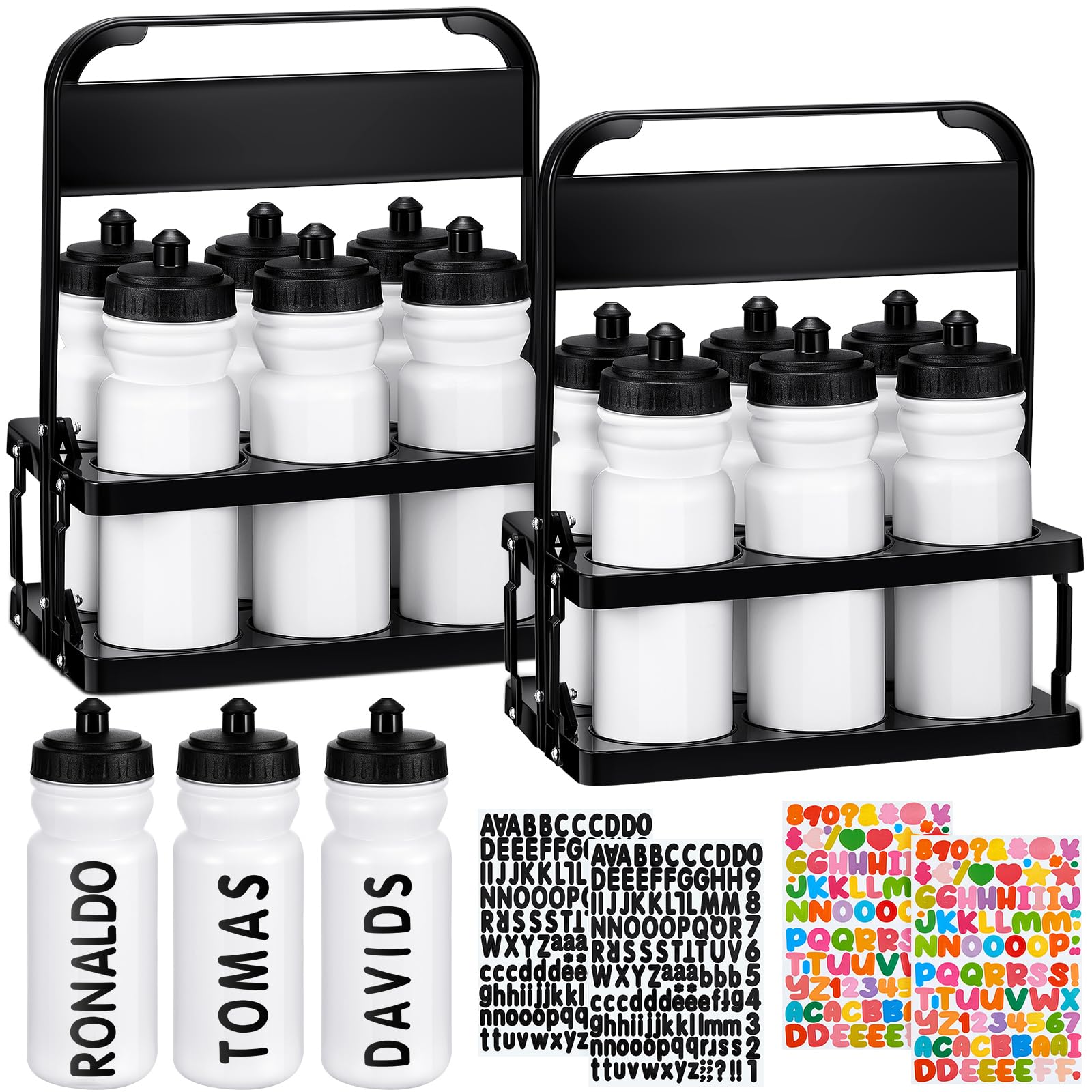 Suclain 14 botellas de agua con botellas de 20 onzas y calcomanías, botella de agua deportiva de boca ancha, botellas de equipo ex