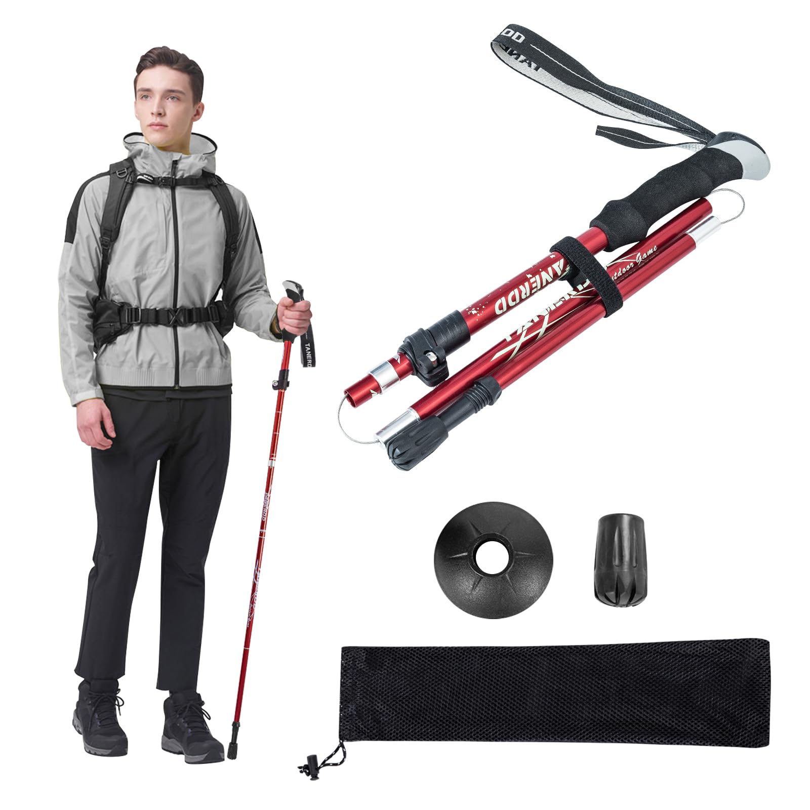 Lightweight Aluminum Collapsible Trekking Pole, Adjustable 7075 Walking Stick for Hiking, Travel & Outdoor Adventures, Quick-Lock