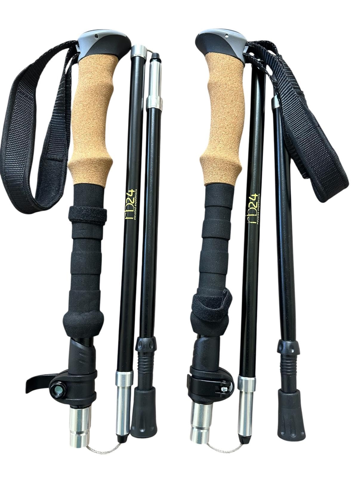 Juego de 2 bastones de senderismo plegables de aluminio con mango de corcho con sistema de bloqueo rápido, telescópicos, plegables