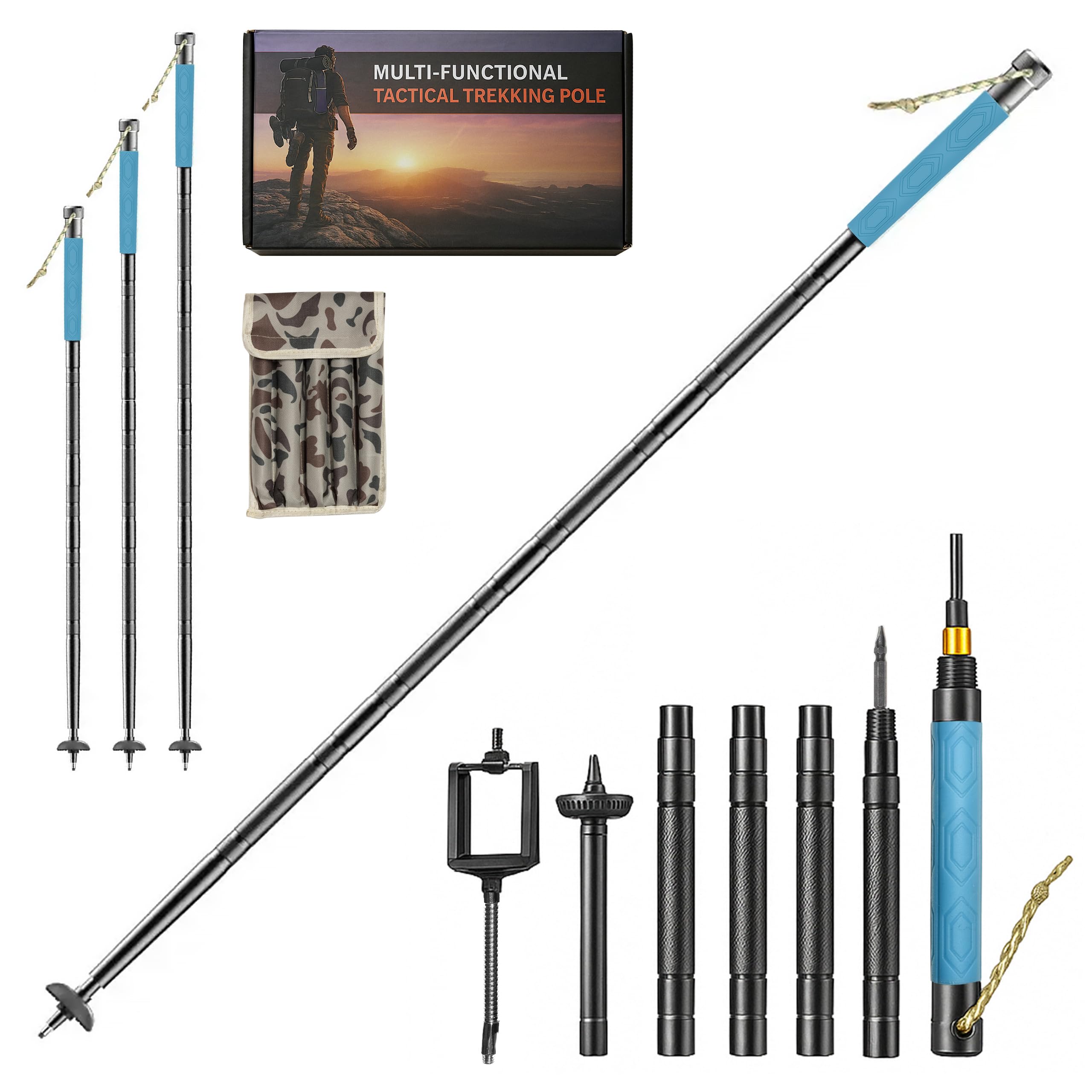 Bastón de senderismo táctico multifuncional: bastón de senderismo plegable ligero con herramientas de supervivencia, bastón para c