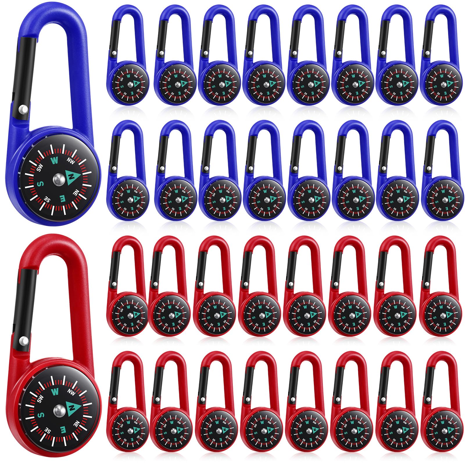 32 llaveros de brújula para niños, aventura, campamento, pequeños clips para cinturón con agujeros, brújula, hebilla de metal, lla