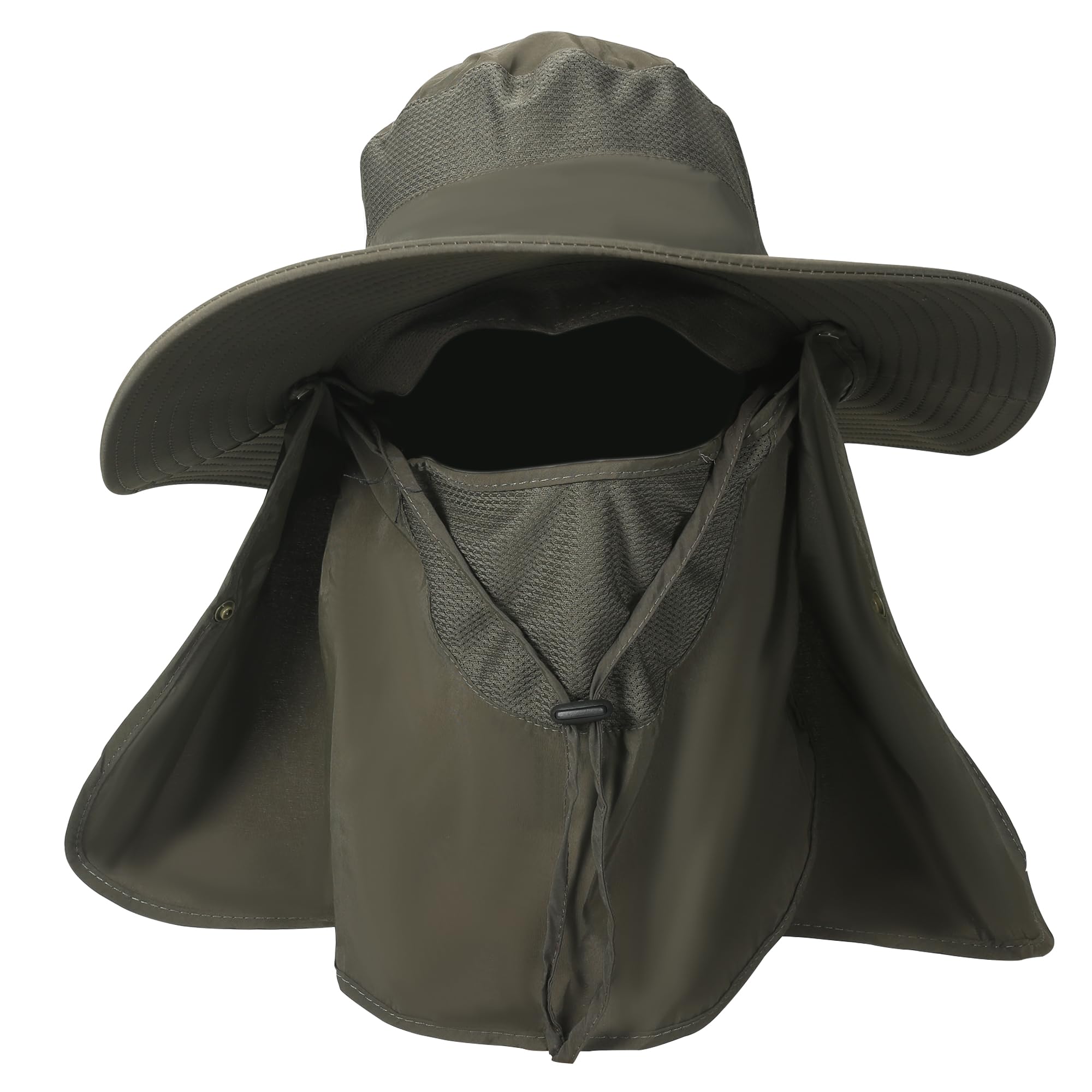 Outrip Sombrero de sol para hombres y mujeres, sombrero de pesca de ala ancha con cubierta facial y solapa para el cuello, sombrer