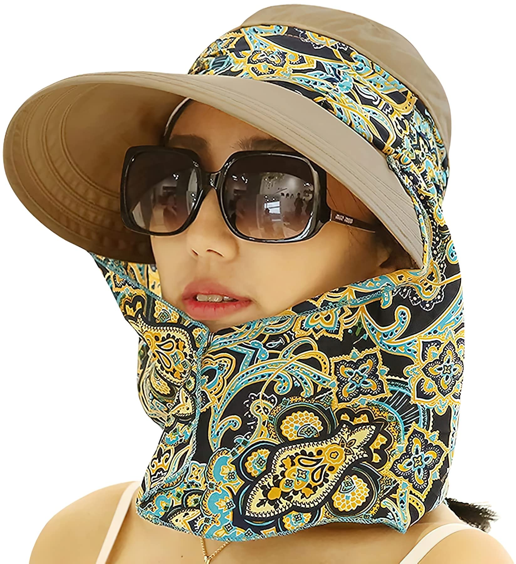 UPF 50+ Sun Hats for Men Women, Wide Brim & Face Neck Flap Fishing Hat, UV Protection Summer Hat for Fishing Hiking Outdoor