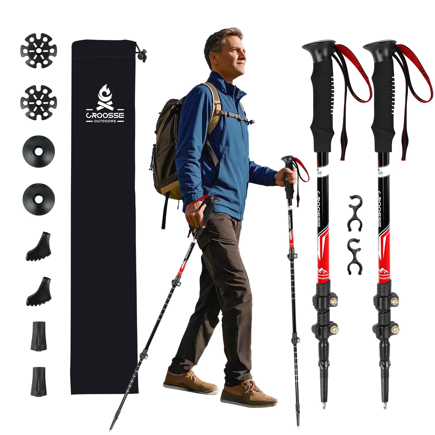 Cascade Mountain Tech Bastones de trekking – Bastones de fibra de carbono para caminar o senderismo con cerraduras ajustables rápi