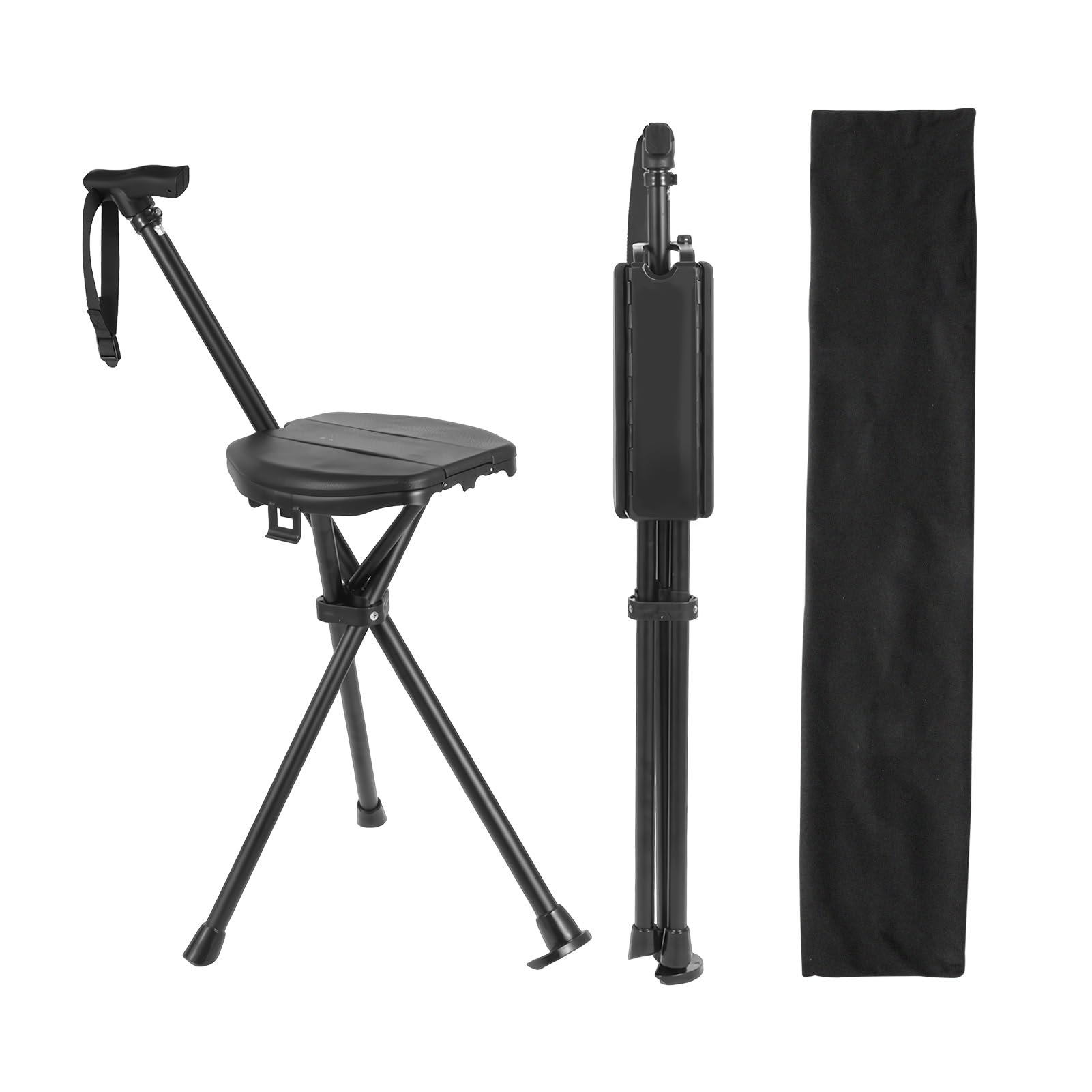 Walking Cane Chair Portable Folding 2-in-1 Trekking Pole Stick with Seat, Adjustable Sturdy Anti-Slip Lightweight Aluminum for Hik