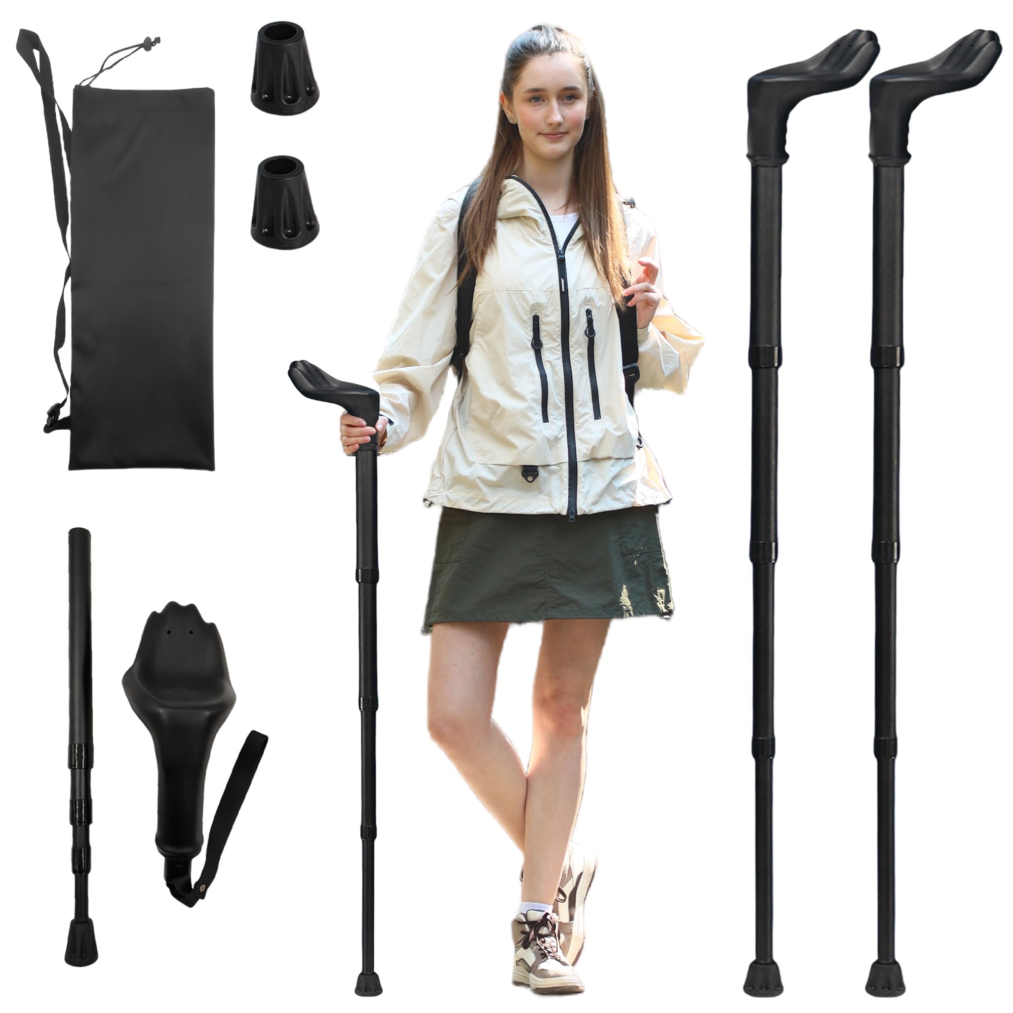 Bastones de senderismo plegables para senderismo, bastones de aluminio ligeros con cerraduras ajustables, extensibles hasta 51 pul