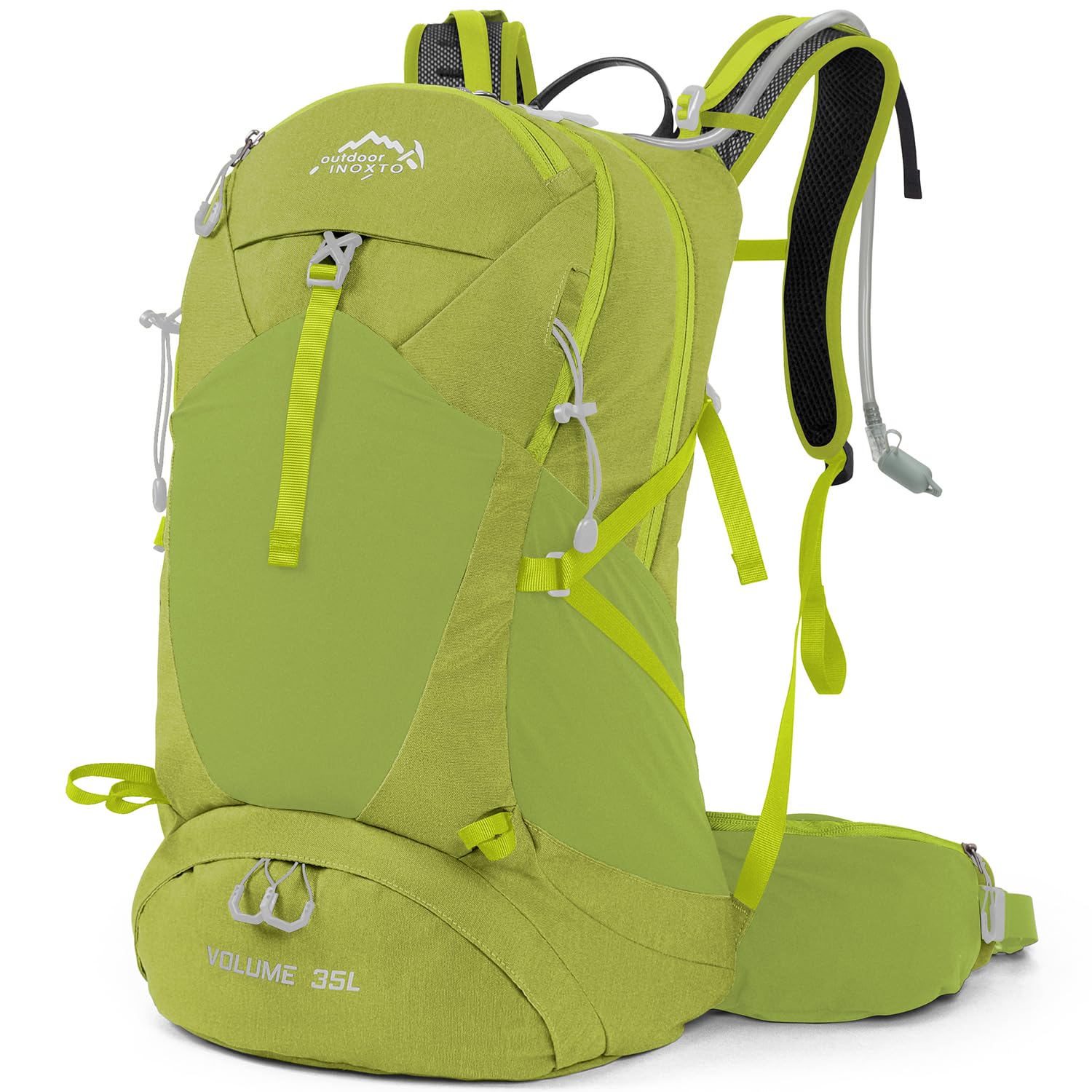 Mochila de senderismo, mochila de senderismo impermeable de 35 litros con bolsa de agua de 3 litros y cubierta para lluvia, ligera