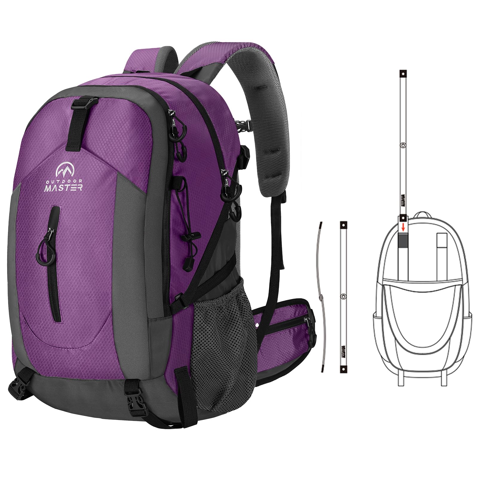 OutdoorMaster Mochila de senderismo de 50L con soporte de aluminio de alta resistencia, mochila de viaje ligera con cubierta para