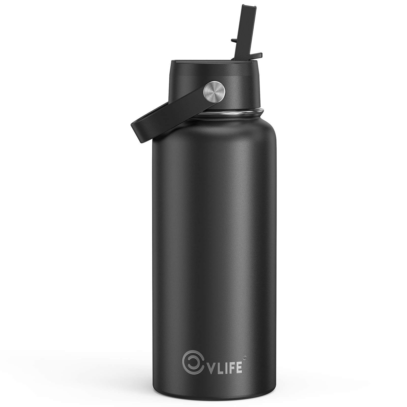 CVLIFE Botella de agua aislada de 32 onzas con popote, termo de acero inoxidable a prueba de fugas para bebidas frías y calientes,