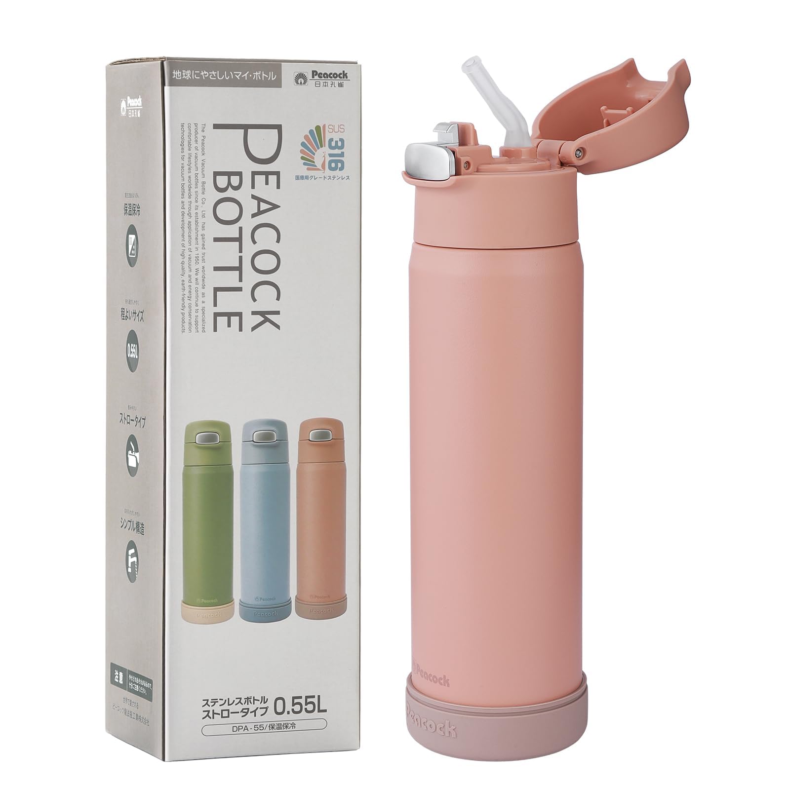 Botella de agua aislada de 18 onzas con popote para deportes, conducción, tumbado, de acero inoxidable, a prueba de fugas, sin BPA