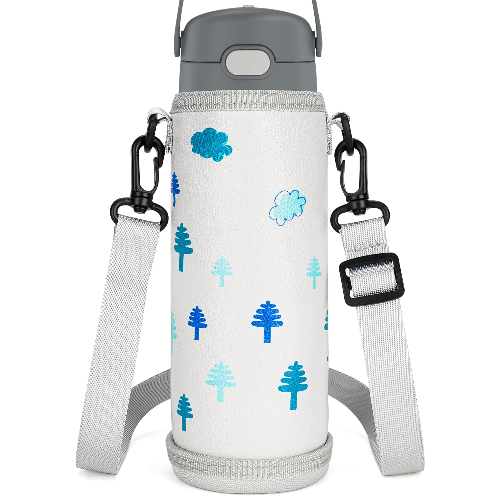Botella de agua aislada para niñas con popote desplegable cubierto, tazas para niños de 16 onzas con acero inoxidable a prueba de