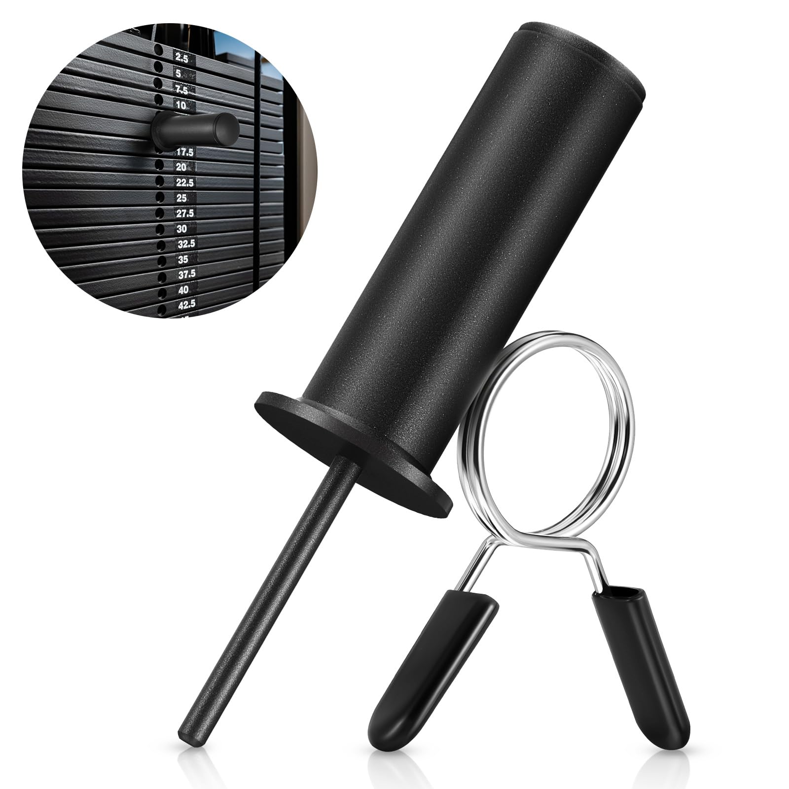 Lasnten Gym Pin with Spring Clip Collar Weight Stack Extender Pin for 2 inch Weight Plate Cable Strength Exercise Machine Gym Trai