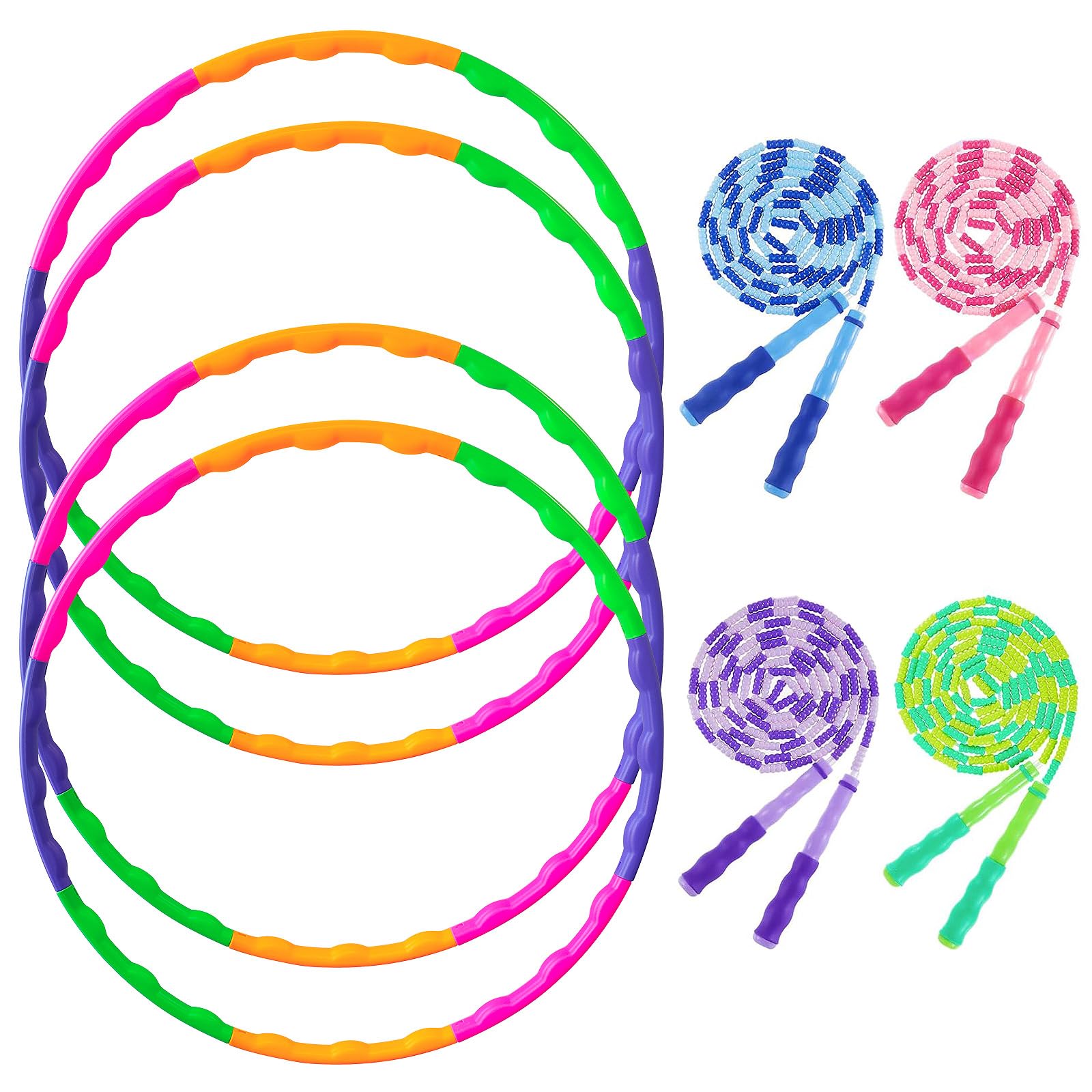Paquete de 8 aros de fitness y cuerda de saltar, anillos de gimnasia extraíbles y cuerdas de saltar de bambú que no se anudan, ade