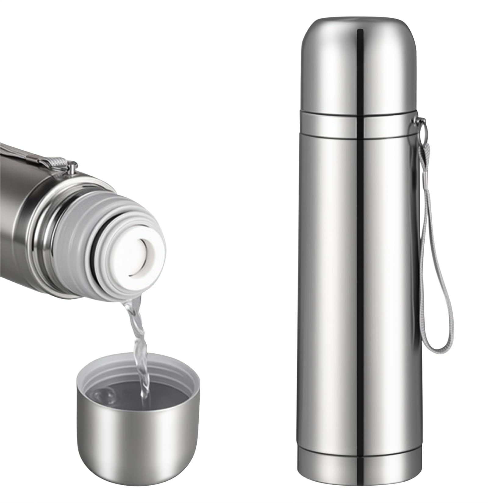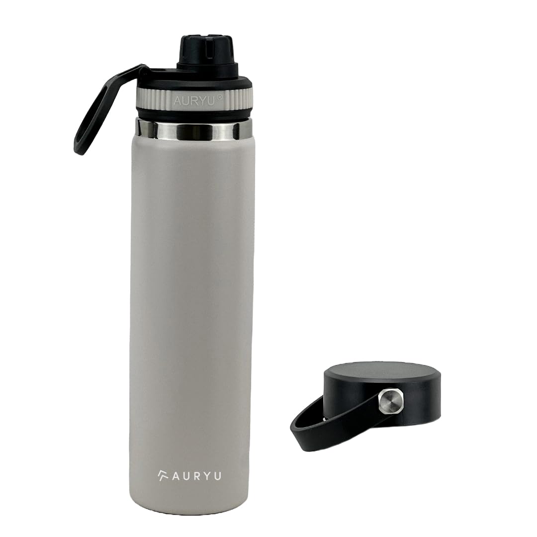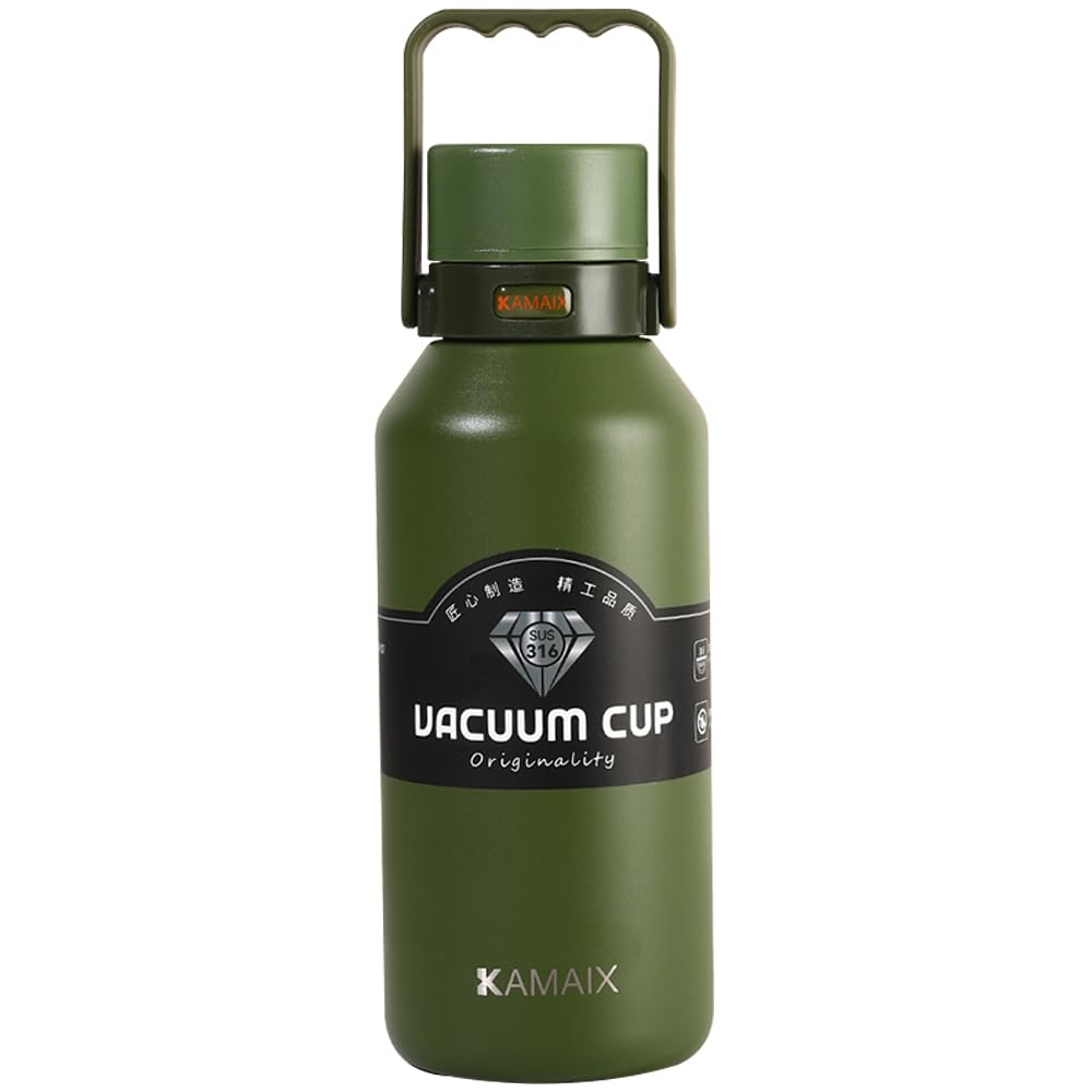 Botella de agua aislada de acero inoxidable de 33 onzas con asa, termo al vacío de doble pared, a prueba de fugas y portátil para
