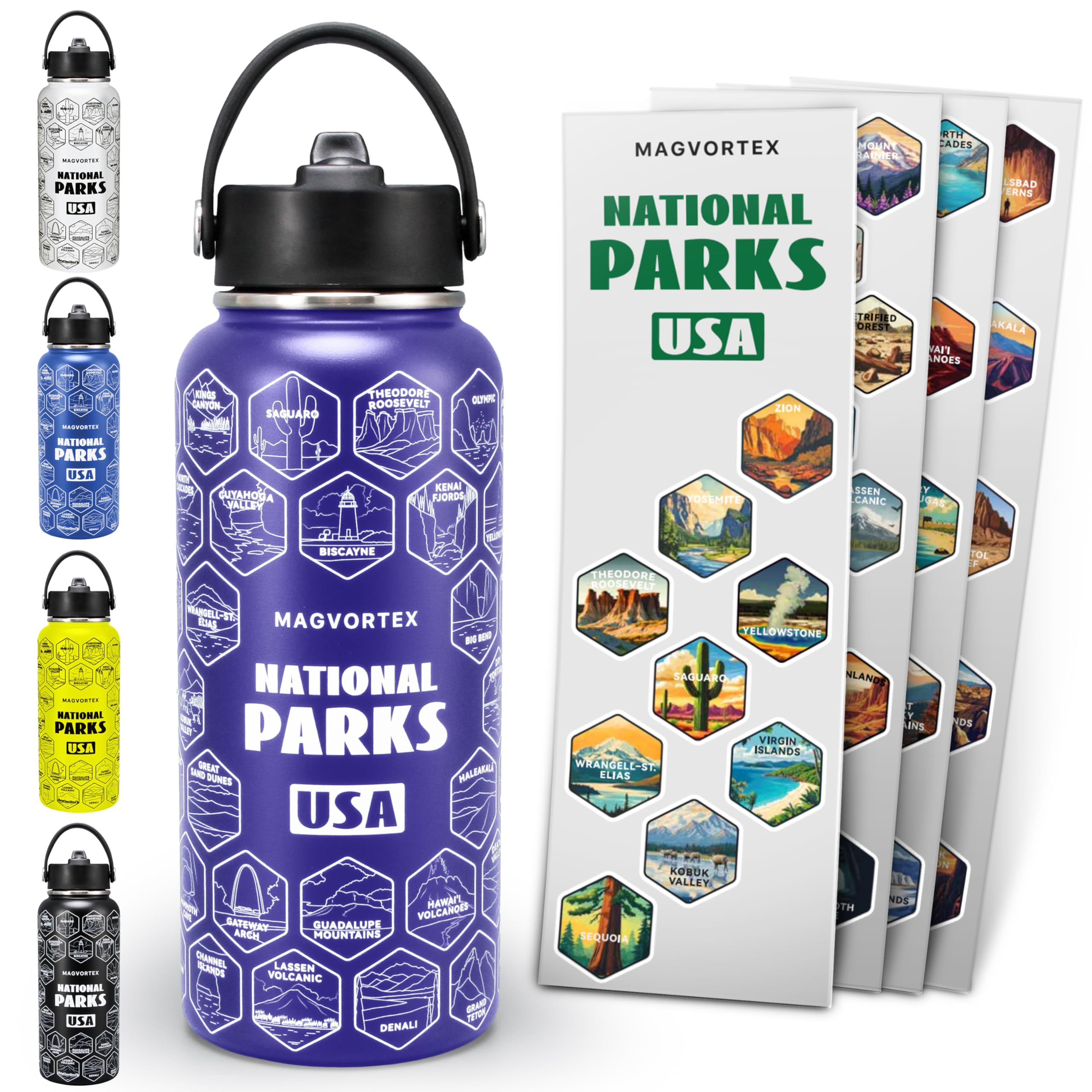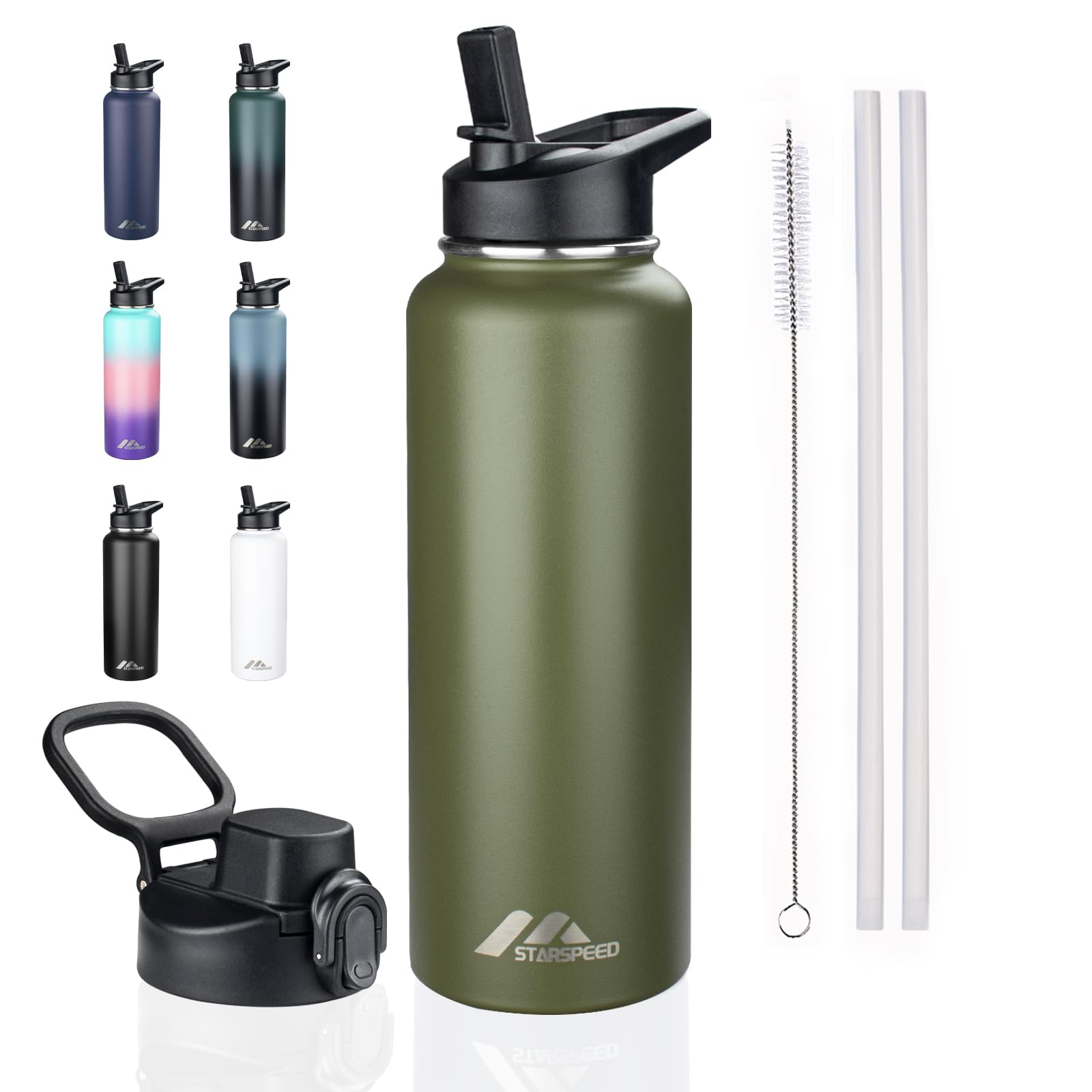 StarSpeed Botella de agua aislada de 40 onzas con pajitas y 2 tapas, botella de agua de doble pared de acero inoxidable al vacío,