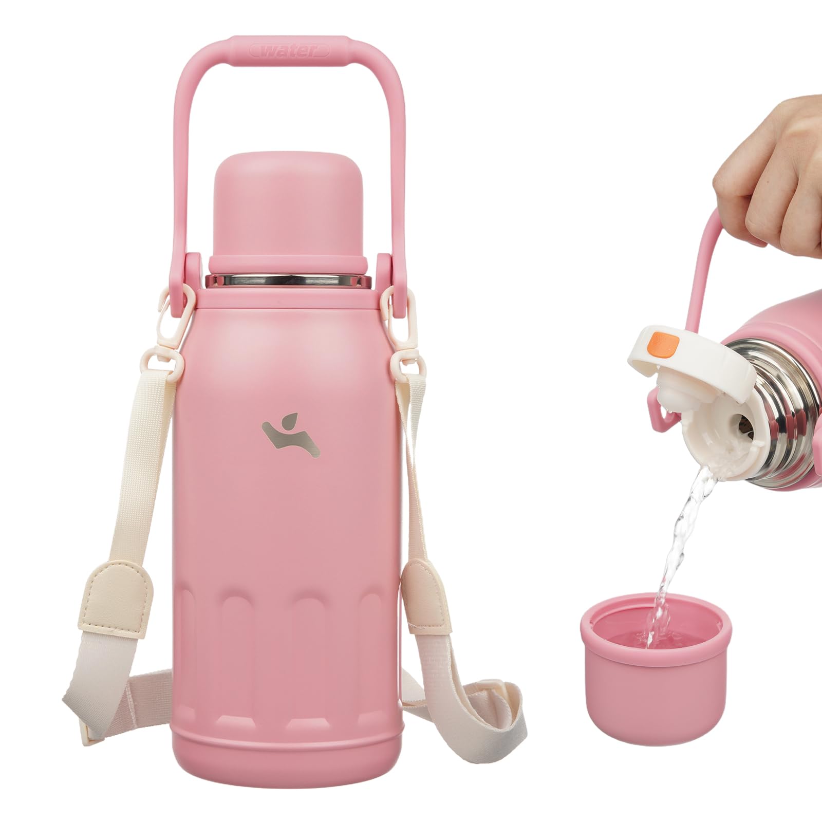 Botella de agua aislada con asa y correa, vaso de viaje al vacío con tapa de taza, taza de café térmica para bebidas frías y calie