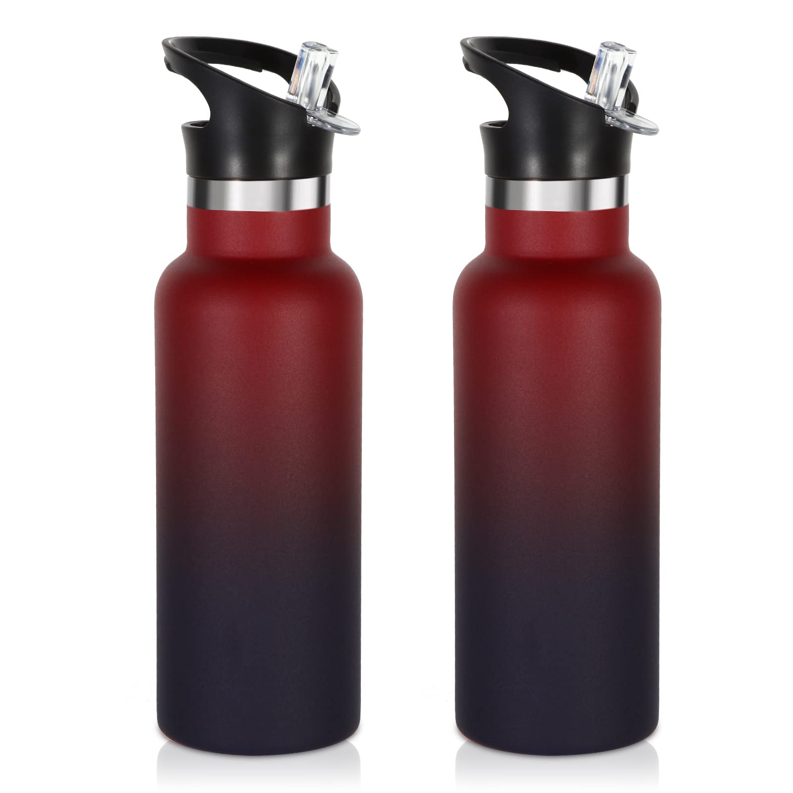 Volhoply Paquete de 2 botellas de agua aisladas de 17 onzas, botellas de agua de acero inoxidable para niños con tapa con pajilla,